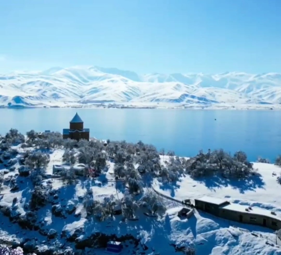Van'da her yıl binlerce yerli ve yabancı turistin ziyaret ettiği Akdamar Adası ve üzerindeki kilise, bembeyaz kar örtüsüyle ziyaretçileri adeta büyülüyor.