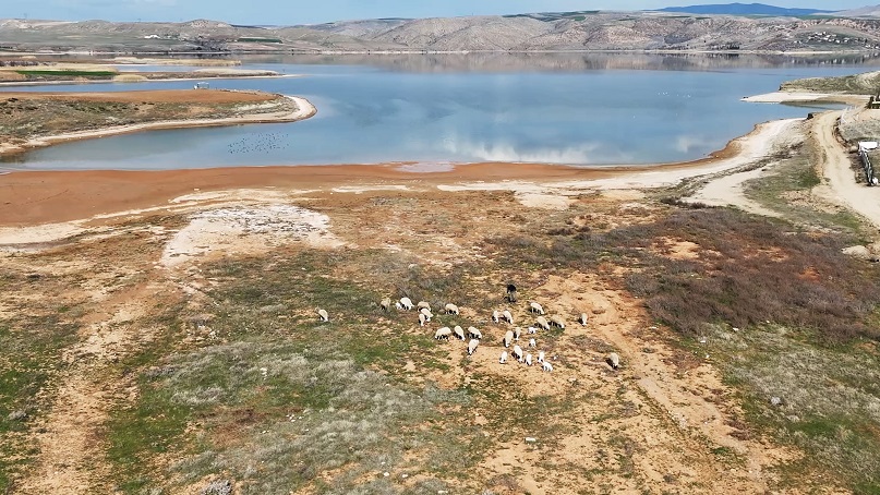 Kırıkkale'den geçen Türkiye'nin en uzun nehri Kızılırmak'ta kuraklık tehlikesi alarm veriyor. Baraj sularının çekildiği alanda da koyunların otladığı görüldü.
