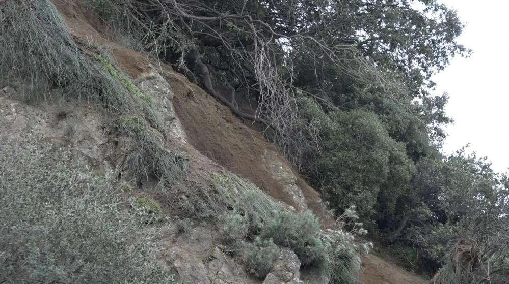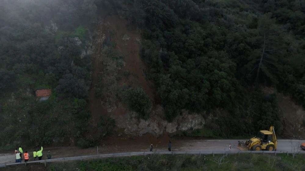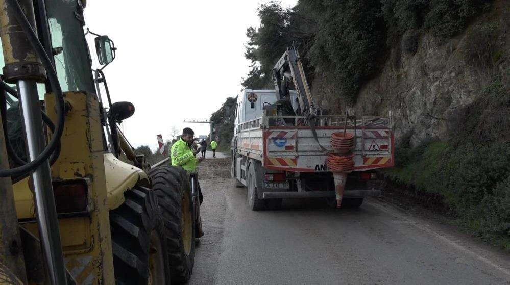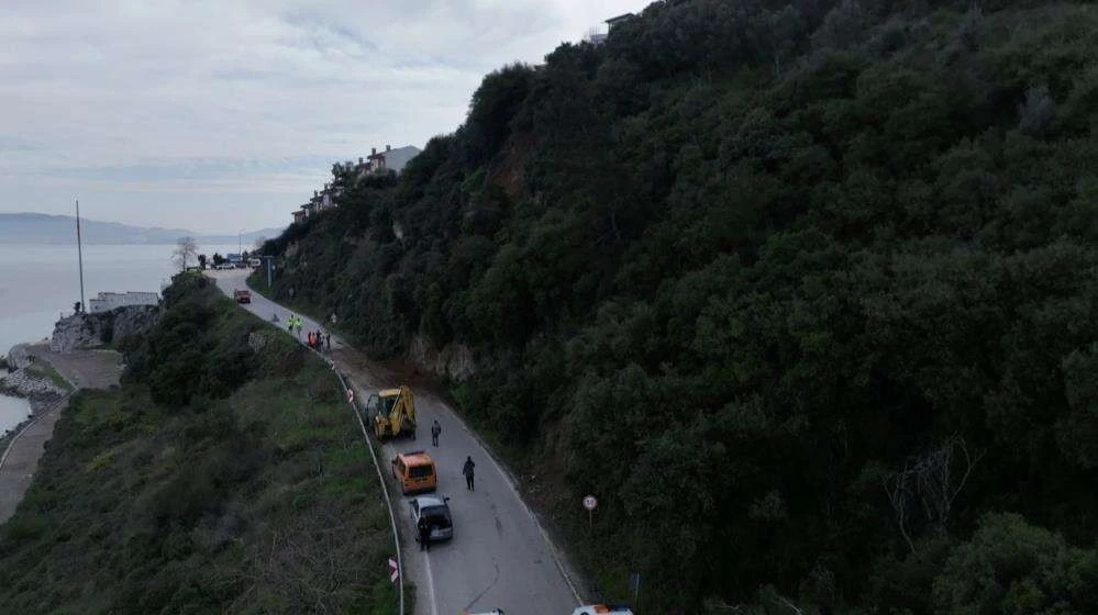 Bursa'nın Mudanya ilçesini Gemlik ilçesine bağlayan karayolunda meydana gelen heyelan yolun kapanmasına sebep oldu.