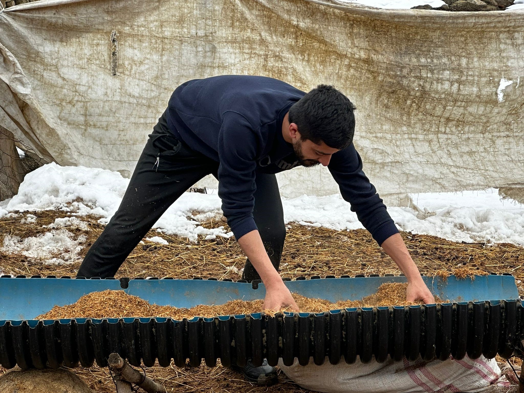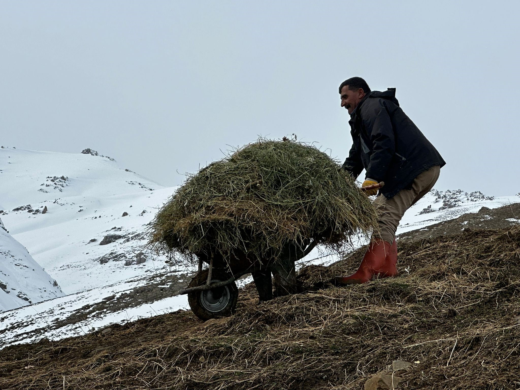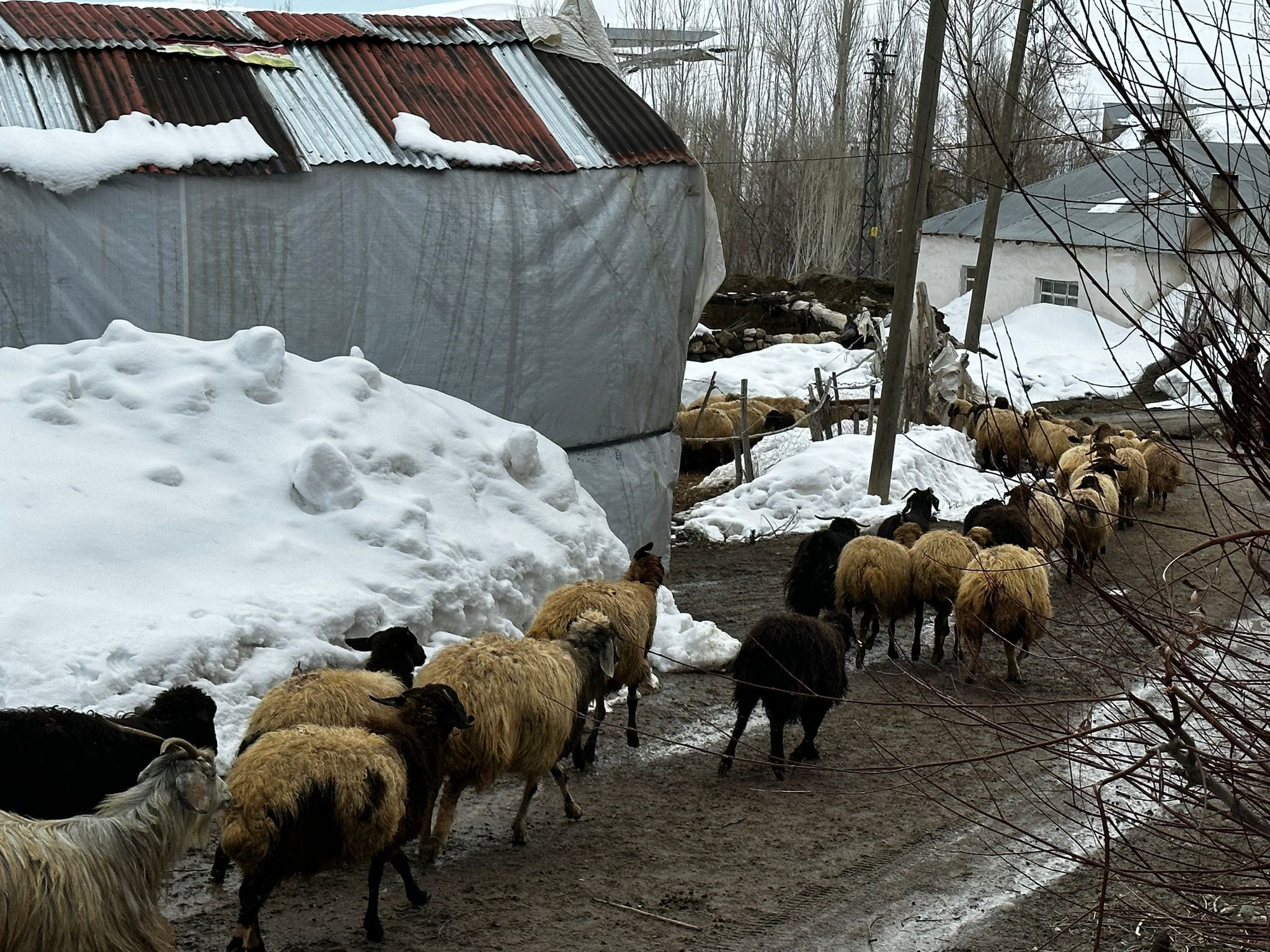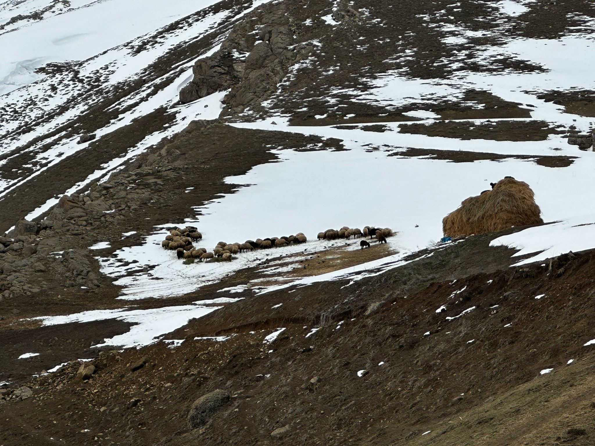 Hakkari’nin Yüksekova ilçesinin yüksek kesimlerinde hayvancılık yapan besiciler, Nisan ayına sayılı günler kala bitmeyen kış zorluğuyla mücadele ederek hayvanlarına bakıyorlar.