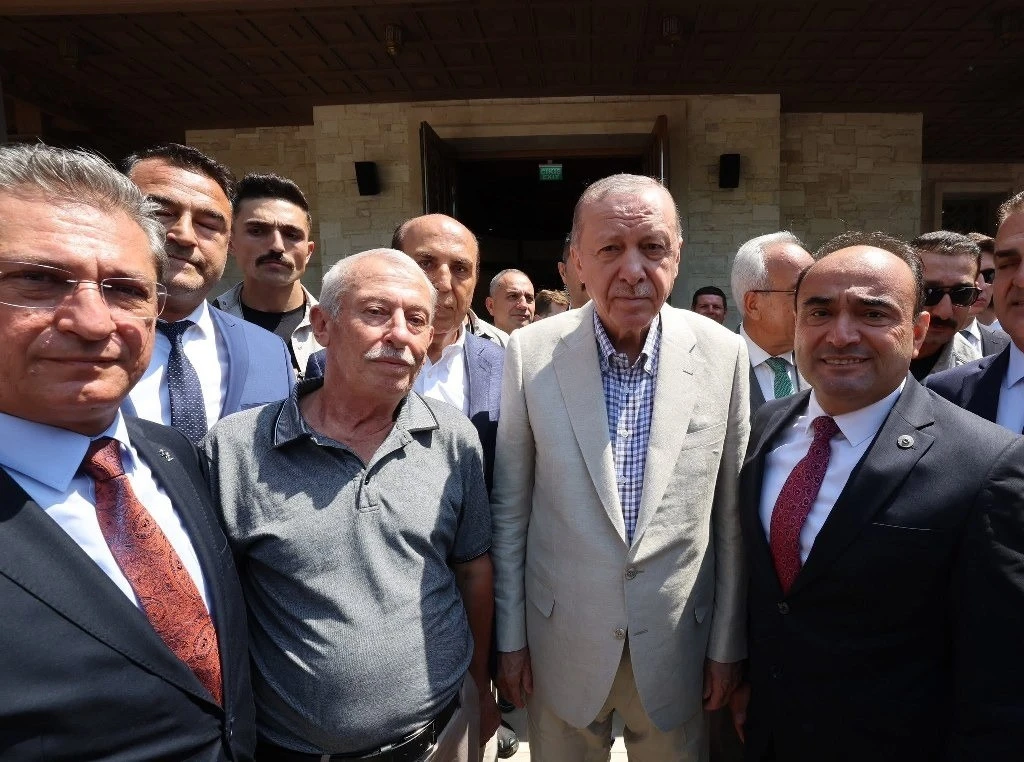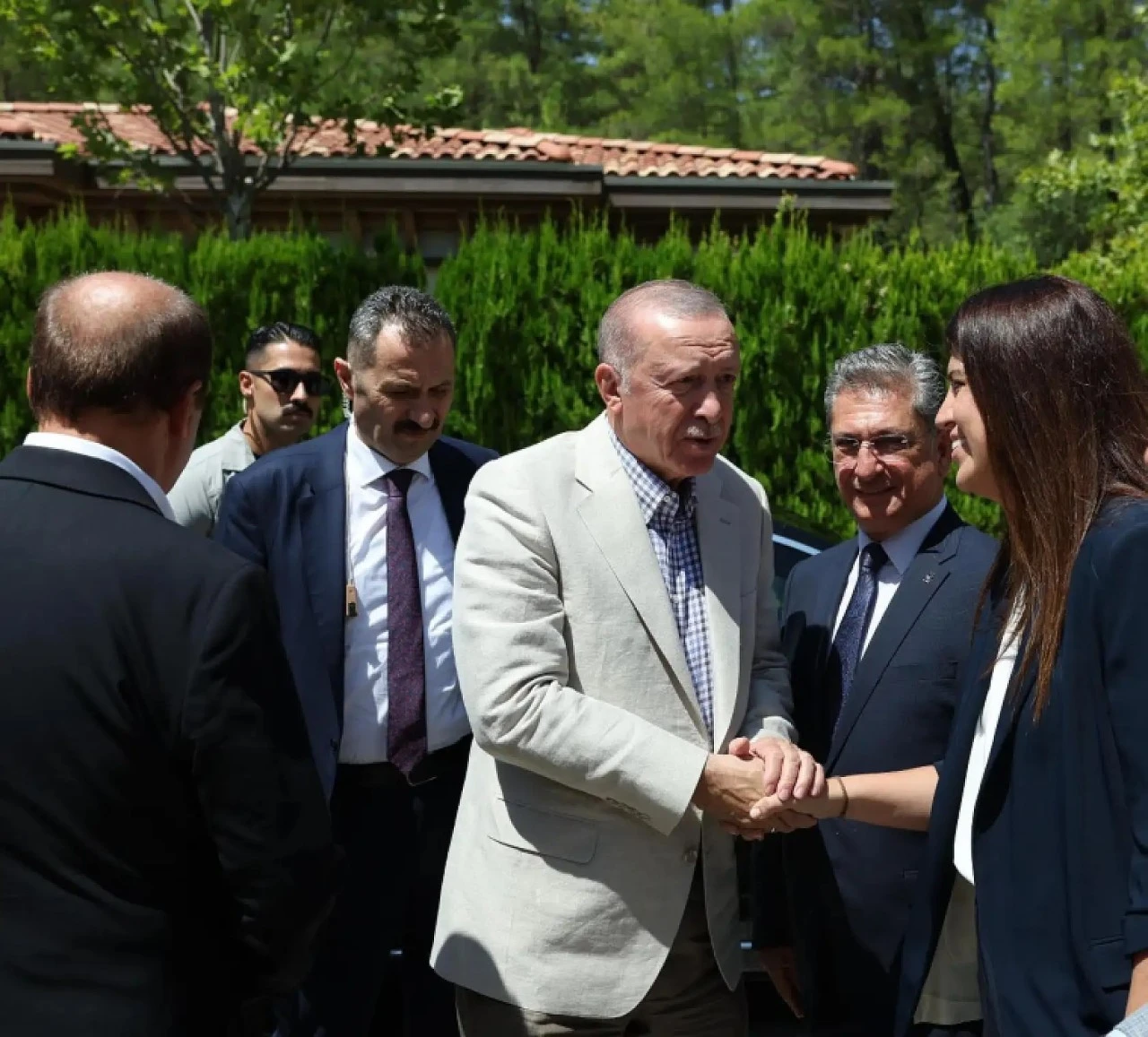 Cumhurbaşkanı Recep Tayyip Erdoğan, Muğla’nın Marmaris ilçesi Karacasöğüt Mahallesi’ndeki Okluk Camii’nde cuma namazını kıldı. Erdoğan'a, AK Parti Gençlik Kolları İl Başkanı Mehmet Ali Kalay'ın verdiği hediye dikkat çekti.