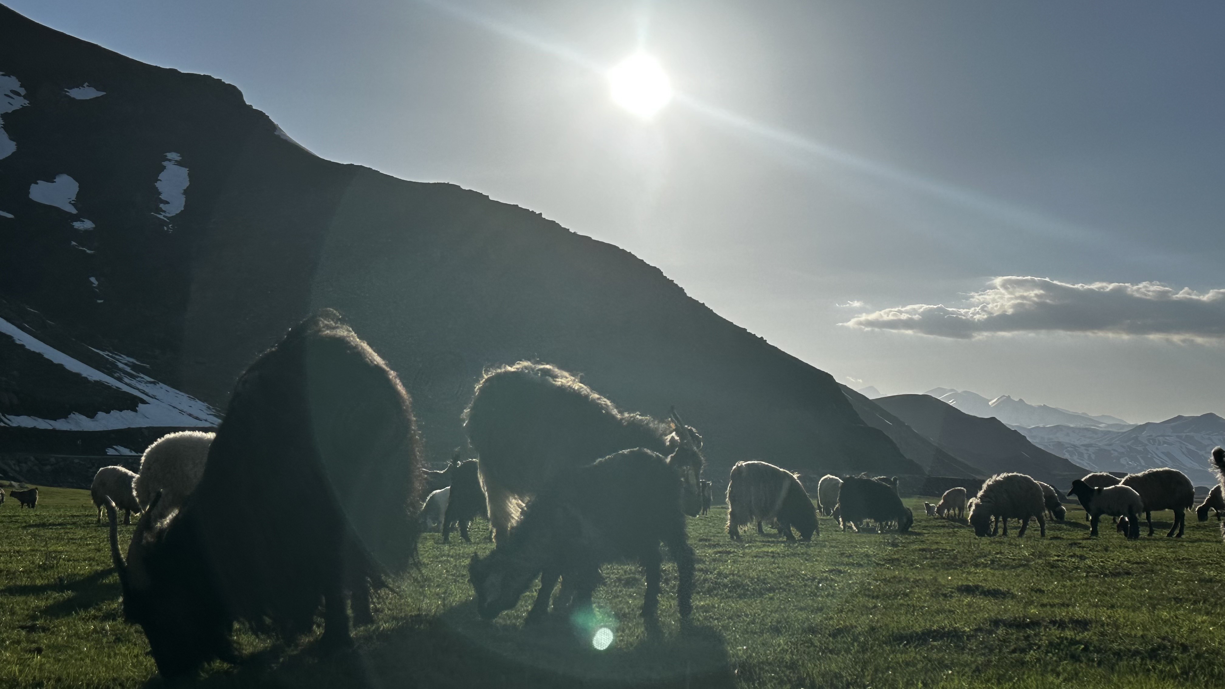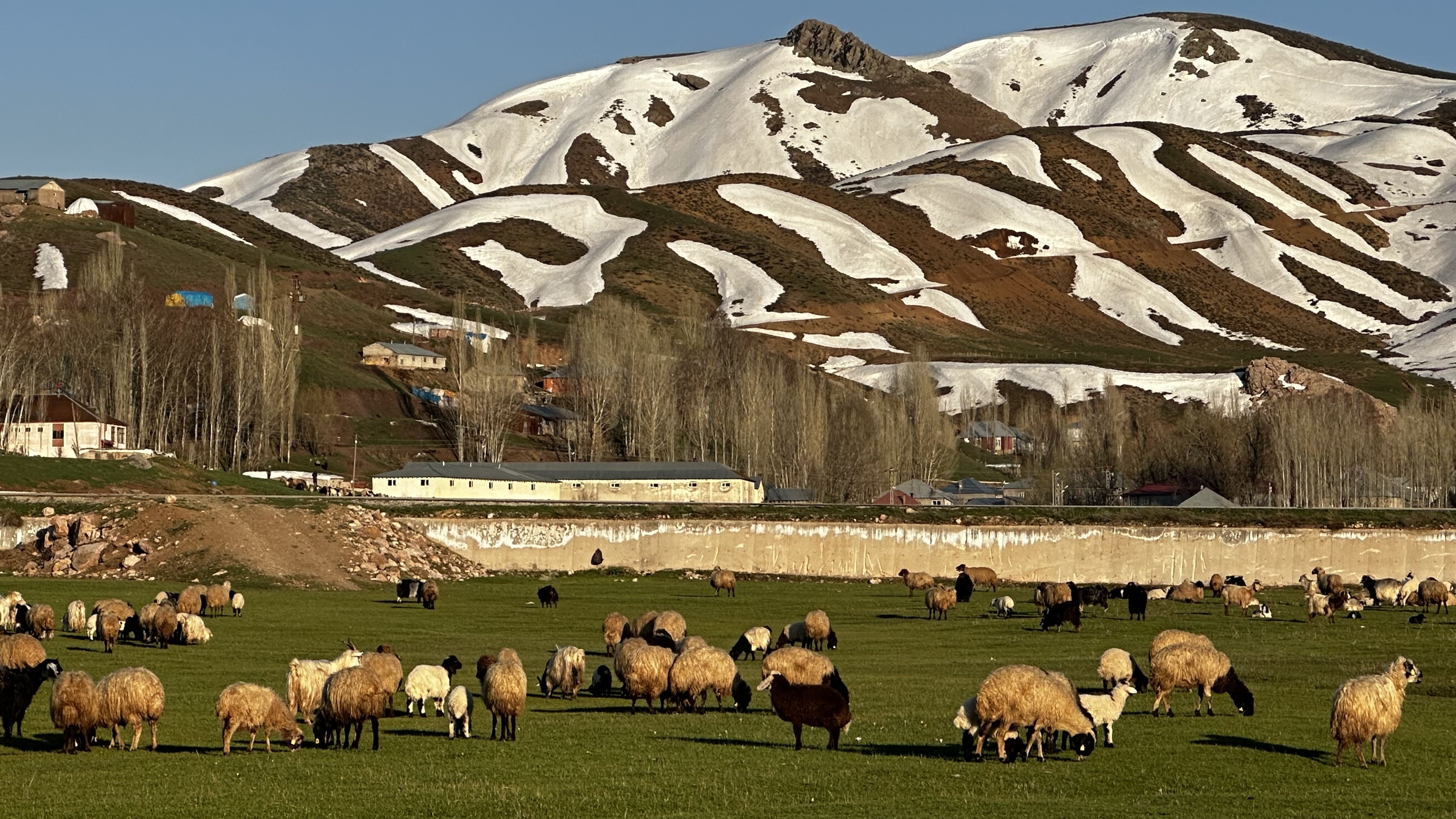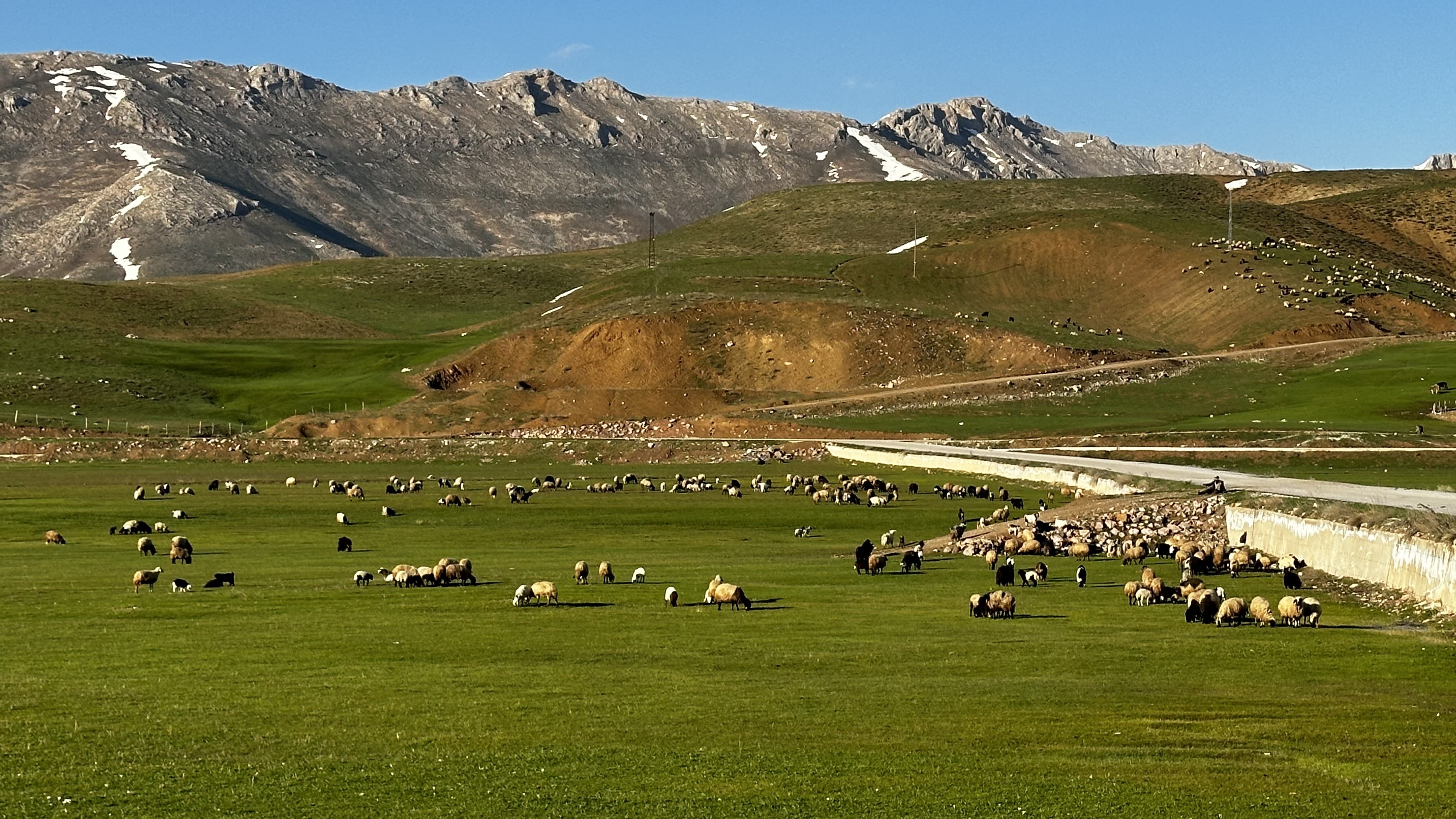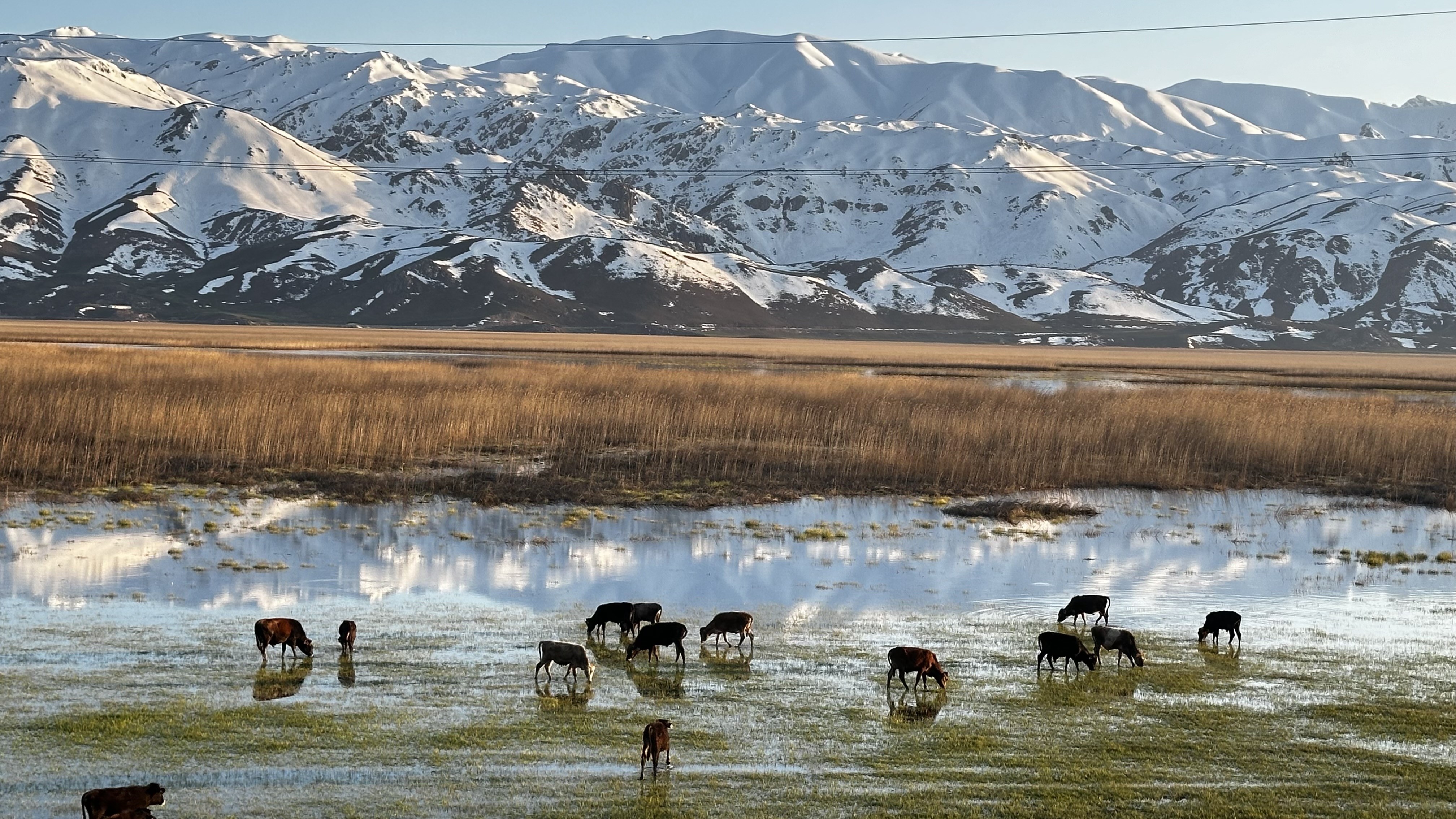 Hakkari’nin Yüksekova ilçesinde karların erimesiyle Nehil Sazlığı'nda otlanan inekler Afrika’daki bufalo sürüsünü andırırken koyunlar ise yeşile bürünen meralara çıktı.