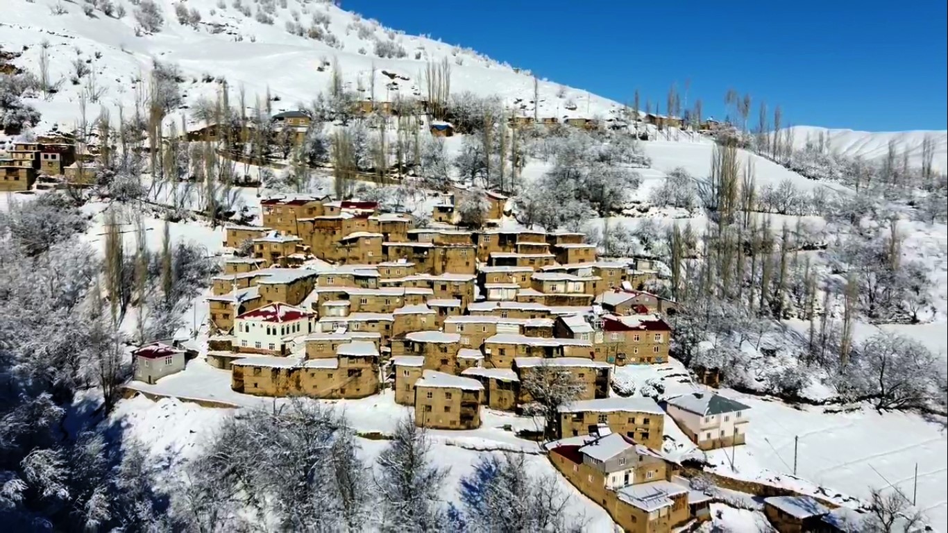 Bitlis’in Hizan ilçesindeki taş evlerden oluşan köyler, kış mevsimiyle birlikte kartpostallık manzaralar oluşturuyor.