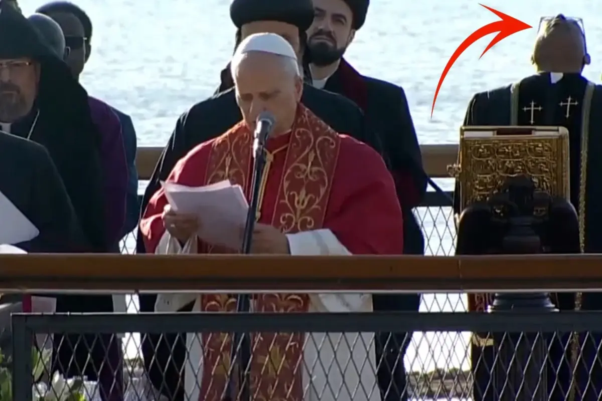 Vatikan Devlet Başkanı Papa 14'üncü Leo, Birinci İznik Konsili'nin 1700'üncü yıl dönümünde Aziz Neophytos Bazilikası'ndaki ayine katıldı. Ayin Sırasında Papa'nın arkasında duran din adamlarından birinin garip hareketleri dikkat çekti.