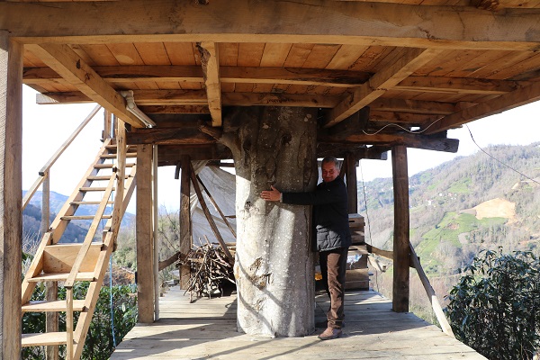 Rizeli 61 yaşındaki Ali Hamdi Uzunhasanoğlu, 150 yıllık ağacın gövdesine 2+1 ev yaptı. Ağaç evi görenler ise şaşkınlıklarını gizleyemiyor.