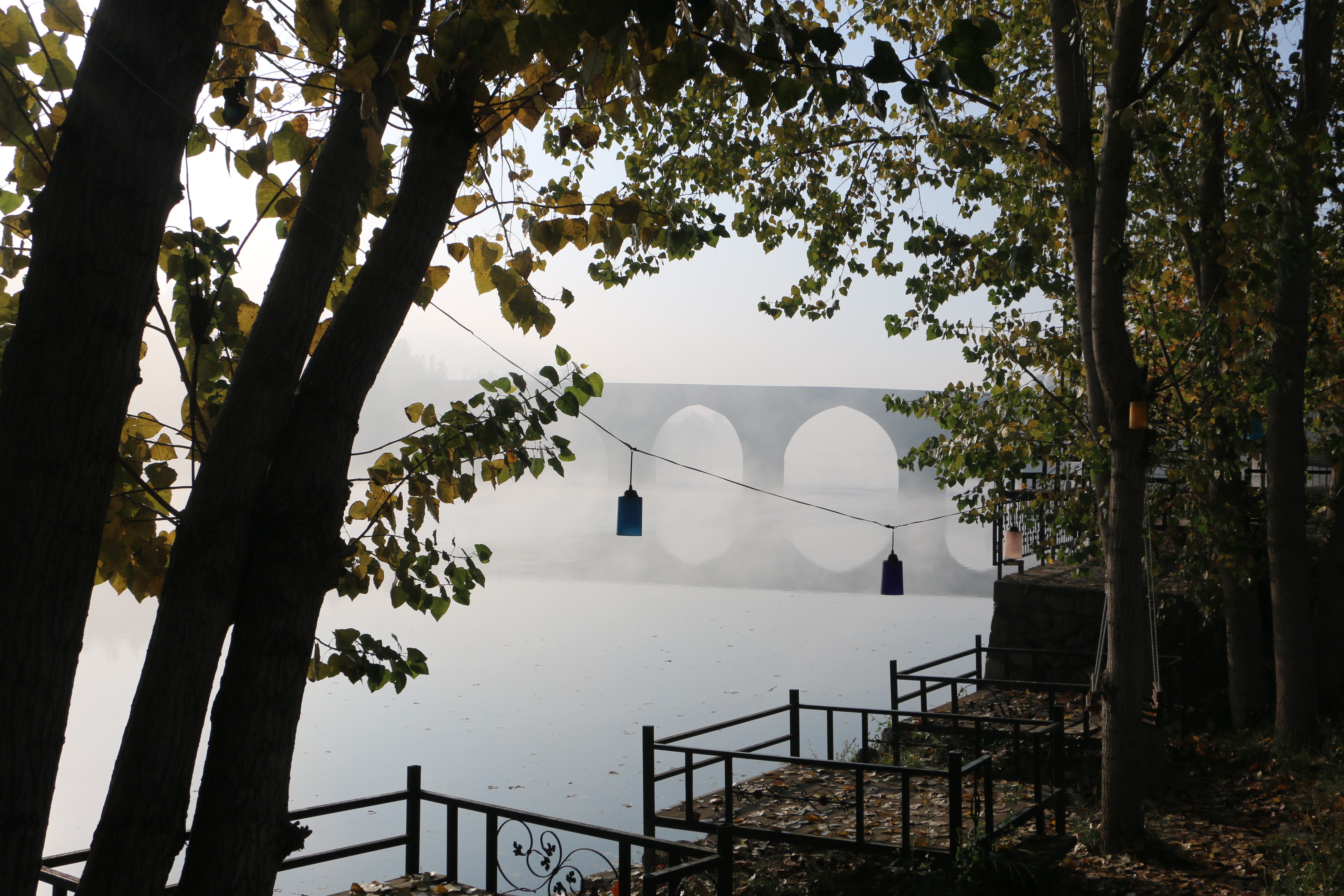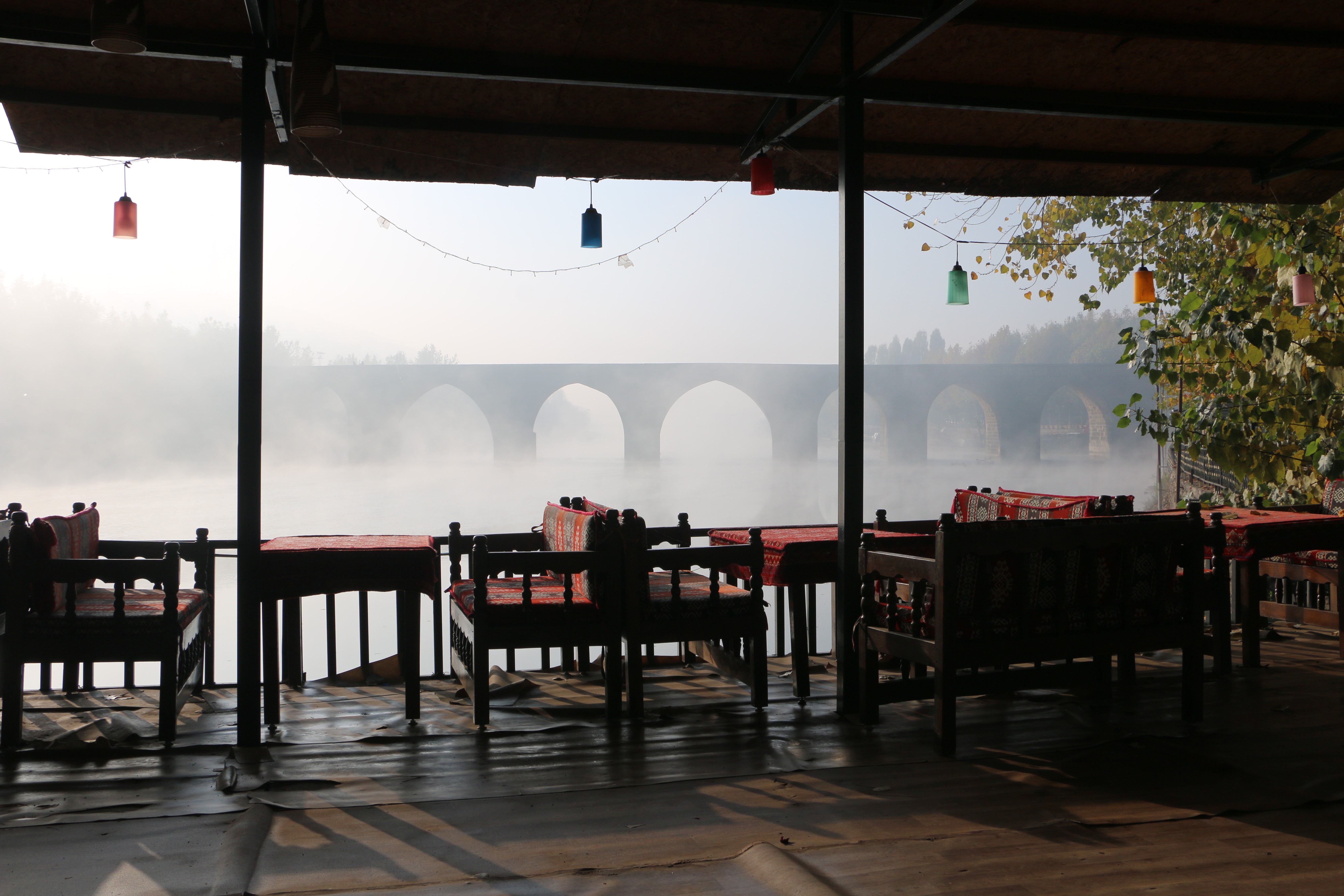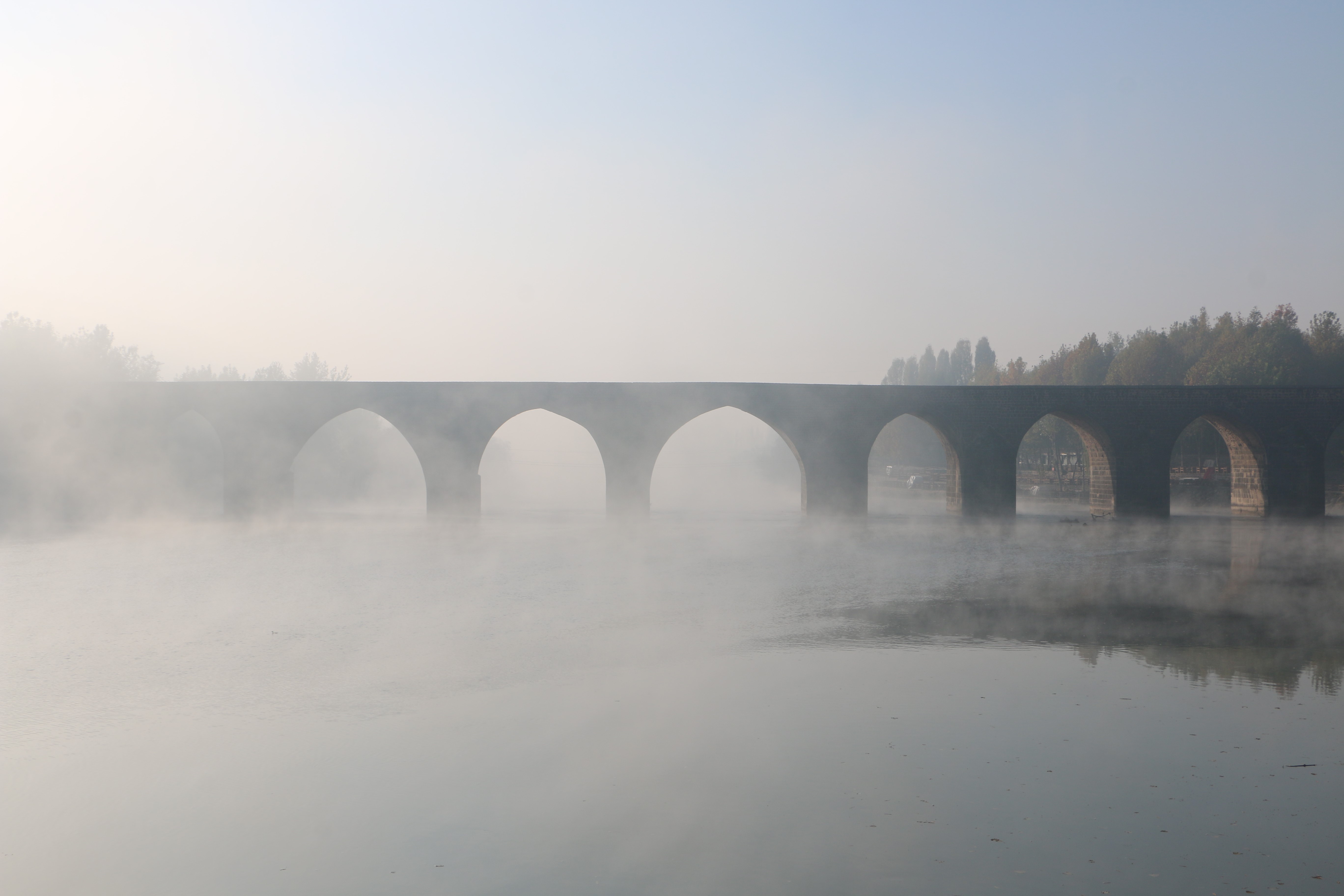Diyarbakır'da sabah saatlerinde etkili olan sis, Hevsel Bahçeleri, miras alanının parçası olan On Gözlü Köprü gibi mekanlarda kartpostallık görüntü oluşturdu.