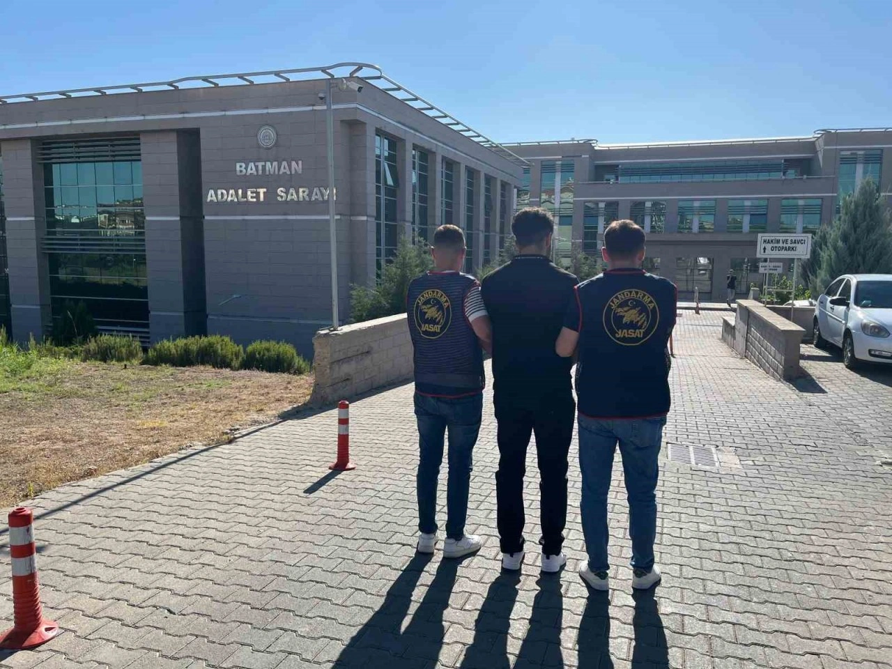 <div>Batman’da dolandırıcılık suçundan 30 ayrı dosyadan aranma kaydı ve toplam 25 yıl kesinleşmiş hapis cezasıyla bir yıldır aranan firari jandarma tarafından yakalanarak tutuklandı.</div><div>İl Jandarma Komutanlığına bağlı Jandarma Suç Araştırma Timleri (JASAT) tarafından düzenlenen çalışmalar neticesinde "dolandırıcılık" suçundan 30 dosyadan aranma kaydı ve 1 yıldır firari olarak aranan hakkında kesinleşmiş 25 yıl hapis cezası bulunan H.K., iki aylık yapılan takip sonucunda yakalandı.</div><div>Zanlı, jandarmadaki işlemlerinin ardından sevk edildiği mahkemece tutuklandı.</div><div><b>Kaynak:</b> IHA</div>