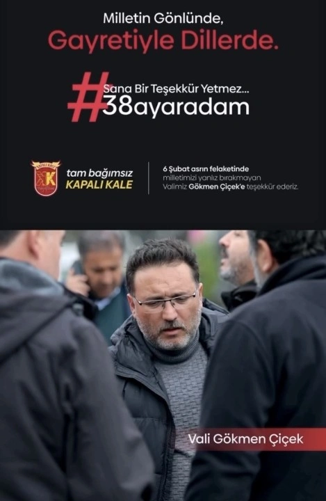 <div>Kayserispor taraftar derneği Kapalı Kale tarafından ‘38 ayar adam’ hashtagiyle günlerdir açıklanması beklenen kişi Vali Gökmen Çiçek oldu. Kapalı Kale Taraftar Derneği, Çiçek’i 6 Şubat depreminde gösterdiği fedakar çalışmalar sonucu ‘38 ayar adam’ ilan etti.</div><div>Kayserispor taraftar derneği Kapalı Kale tarafından günlerdir açıklanması beklenen ‘38 ayar adam’ saat 20.38 itibariyle açıklandı. Kapalı Kale Taraftar Derneği tarafından sosyal medya üzerinden yapılan açıklamada, 6 Şubat asrın felaketinde göstermiş olduğu fedakar çalışmalar nedeniyle Kayseri Valisi Gökmen Çiçek, ‘38 ayar adam’ ilan edildi.</div><div>Kapalı Kale Derneği tarafından yapılan açıklamada, "Şimdi perde kalktı. O, milletin en zor anında yalnız bırakmayan, gece gündüz demeden sahada olan, yüreğini ortaya koyan bir adam: Valimiz Gökmen Çiçek. 6 Şubat 2023 Acının en derinden hissedildiği gün. O gün kimileri bekledi, kimileri izledi. Ama birisi vardı ki halkının yanından bir an bile ayrılmadı. Karanlığın içerisinde ışık oldu. Umudu ayakta tuttu. Bugün adı dualarda, emeği hafızalarda. Depremin bağrında halkın hep yanında duran #38AyarAdam’a sonsuz minnetle" denildi.</div><div></div><div><b>Kaynak:</b> IHA</div>
