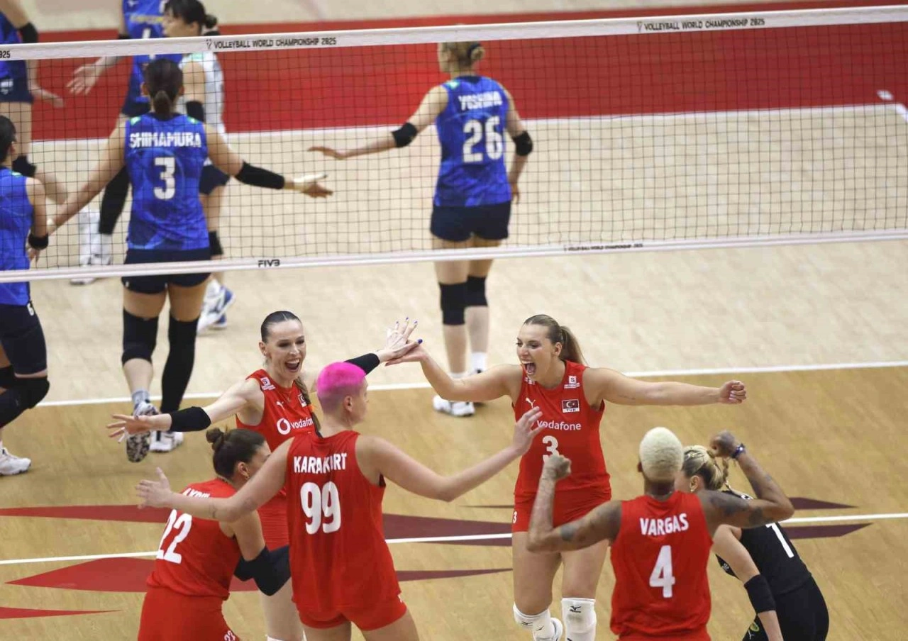 <div>A Milli Kadın Voleybol Takımı, FIVB Kadınlar Dünya Voleybol Şampiyonası yarı finalinde Japonya’yı 3-1 mağlup etti ve finale yükseldi.</div><div>Tayland’da düzenlenen FIVB Kadınlar Dünya Voleybol Şampiyonası’nda A Milli Kadın Voleybol Takımı, yarı finalde Japonya ile karşı karşıya geldi. Milliler, rakibini setlerde 3-1 yenerek tarihinde ilk kez finale yükseldi.</div><div>Ay-yıldızlılar, dünya şampiyonluğu için yarın saat 15.30’da İtalya - Brezilya maçının galibiyle oynayacak.</div><div>Salon: Huamark, Bangkok</div><div>Hakemler: Ivaylo Ivanov, Karina Noemi Karina Rene</div><div>Japonya: Ishikawa, Miyabe, Wada, Sato, Shimamura, Seki, Kojima (L) (Tsusaka, Akimoto, Kitamado)</div><div>Başantrenör: Ferhat Akbaş</div><div>Türkiye: Ebrar, Zehra, Vargas, İlkin, Eda, Cansu, Gizem (L) (Yaprak, Elif, Hande)</div><div>Başantrenör: Daniele Santarelli</div><div>Setler: 25-16, 17-25, 18-25, 25-27</div><div>Süre: 1 saat, 36 dakika</div><div></div><div><b>Kaynak:</b> IHA</div>