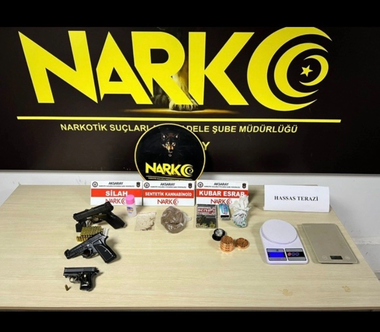 <div>Aksaray’da 7 günde birçok operasyon düzenleyen narkotik ekipleri çeşitli uyuşturucularla birlikte 28 şahsı yakalayarak gözaltına alırken, şüphelilerden 5’i tutuklandı.</div><div>Operasyon şehrin çeşitli mahallelerinde ev ve iş yerlerine yönelik gerçekleştirildi. Edinilen bilgiye göre, uyuşturucuyla mücadele çerçevesinde çalışmalar yapan İl Emniyet Müdürlüğü Narkotik Suçlarla Mücadele (NSM) Şubesi ekipleri Aksaray Cumhuriyet Başsavcılığı koordinesinde 1 hafta içerisinde birçok adrese operasyon düzenledi. Operasyonlarda 28 şüpheli yakalanarak gözaltına alınırken, adreslerde yapılan aramalarda 172,5 gram sentetik kannabinoid, 91,74 gram esrar, 15,02 gram metamfetamin, 2,7 gram esrar tohumu, 9 adet uyuşturucu hap, 2,65 gram amfetamin, 4 bin 10 TL suçtan elde edilen para, 3 adet ruhsatsız tabanca, 1 adet kurusıkı tabanca, 79 adet tabanca mermisi ve 2 adet hassas terazi ele geçirildi.</div><div>Emniyette sorgulanan ve Aksaray Adliyesine sevk edilen 28 şüpheliden 5’i tutuklanarak cezaevine gönderildi.</div><div><b>Kaynak:</b> IHA</div>