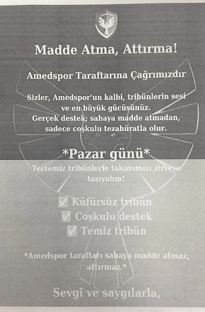 <div data-end="642" data-start="372">Sezonun ilk 4 haftasında 7 puan toplayan Amedspor, milli ara sonrası sahasında taraftarıyla buluşmaya hazırlanırken, ligin ikinci haftasında Erzurumspor FK maçında yaşanan olayların ardından ağır cezalar alan kulüp, benzer durumların tekrar yaşanmaması için adım attı.</div> <div data-end="642" data-start="372"></div> <div data-end="878" data-start="644"><strong data-end="675" data-start="644">Üç Dilde Broşür Dağıtılacak</strong><br data-end="678" data-start="675">Platform, Türkçe, Kürtçe ve Zazaca hazırlanan broşürleri karşılaşma öncesinde stadyuma gelen taraftarlara dağıtacak. “Madde atma, attırma” başlığıyla yayımlanan broşürlerde şu ifadelere yer verildi:</div> <div data-end="878" data-start="644"></div> <div data-end="1082" data-start="880">"Sizler Amedspor’un kalbi, tribünlerin sesi ve en büyük gücüsünüz. Gerçek destek sahaya madde atmadan, sadece coşkulu tezahüratla olur. Pazar günü tertemiz tribünlerle takımımızı zirveye taşıyalım.”</div> <div data-end="1430" data-start="1084"><strong data-end="1110" data-start="1084">Taraftardan Yoğun İlgi</strong><br data-end="1113" data-start="1110">Pendikspor maçı öncesinde bilet satışlarının 12 bine ulaştığı öğrenilirken, maç günü yapılacak satışlarla bu sayının 20 bine yaklaşması bekleniyor. Amedspor, taraftarının desteğiyle sahaya çıkacağı karşılaşmada yeni transferleriyle 3 puan alarak 5. hafta sonunda Play-Off hattındaki iddiasını sürdürmeyi hedefliyor.</div>