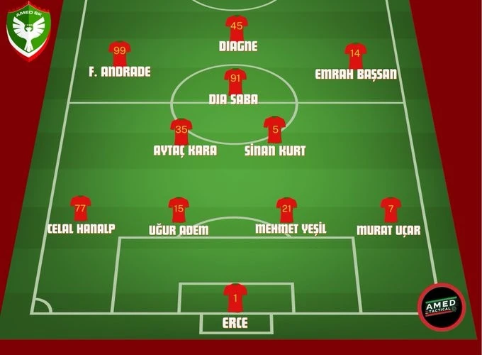 <div data-end="612" data-start="327"><strong data-end="353" data-start="332">Kadro bomba gibi:</strong> Takımın yeni transferlerinden Kouyate, kritik mücadelede yedekler arasında yer alsa da sahadaki enerji fırtınası, rakibi yerle bir edecek. Taraftarlar sosyal medyada paylaşılan listeyi görünce “Bugün zafer bizim olacak!” yorumlarıyla adeta yerinde zıpladı.</div> <div data-end="822" data-start="614"><strong data-end="641" data-start="618">Stadyum şenlenecek:</strong> Tribünler dolacak, taraftarlar takımın arkasında dev bir duvar oluşturacak. Sahada ise her top kapma, her şut ve her pas, Amedspor’un Pendikspor’a karşı sert mesajını gösterecek.</div> <div data-end="822" data-start="614"></div> <div data-end="1083" data-start="824"><strong data-end="848" data-start="827">Fırtına başlıyor:</strong> İlk 11’in açıklanmasıyla birlikte sosyal medyada heyecan patladı. Saatler ilerledikçe Amedspor severler sahaya koşacak, tribünlerde dev bir destek dalgası oluşacak ve Pendikspor karşısında unutulmaz bir mücadele sahneleri yaşanacak!</div>