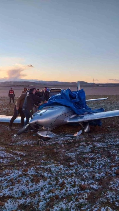 <div>Ankara’nın Polatlı ilçesinde bir eğitim uçağı, teknik arıza nedeniyle tarlaya zorunlu iniş yaptı.</div><div>Edinilen bilgilere göre, çift motorlu bir eğitim uçağı uçuş sırasında motor arızası yaşadı. Pilot, uçağın güvenli bir şekilde iniş yapabilmesi için en uygun alanı belirleyerek tarlaya yöneldi. Yüksek Hızlı Tren hattına yakın bir bölgede tarlaya başarıyla inen uçağın pilotları kazadan yara almadan kurtuldu. Yetkililer olayla ilgili inceleme başlatırken, uçağın teknik arızasının nedenine dair araştırmaların sürdüğü öğrenildi.</div><div><b>Kaynak:</b> IHA</div>