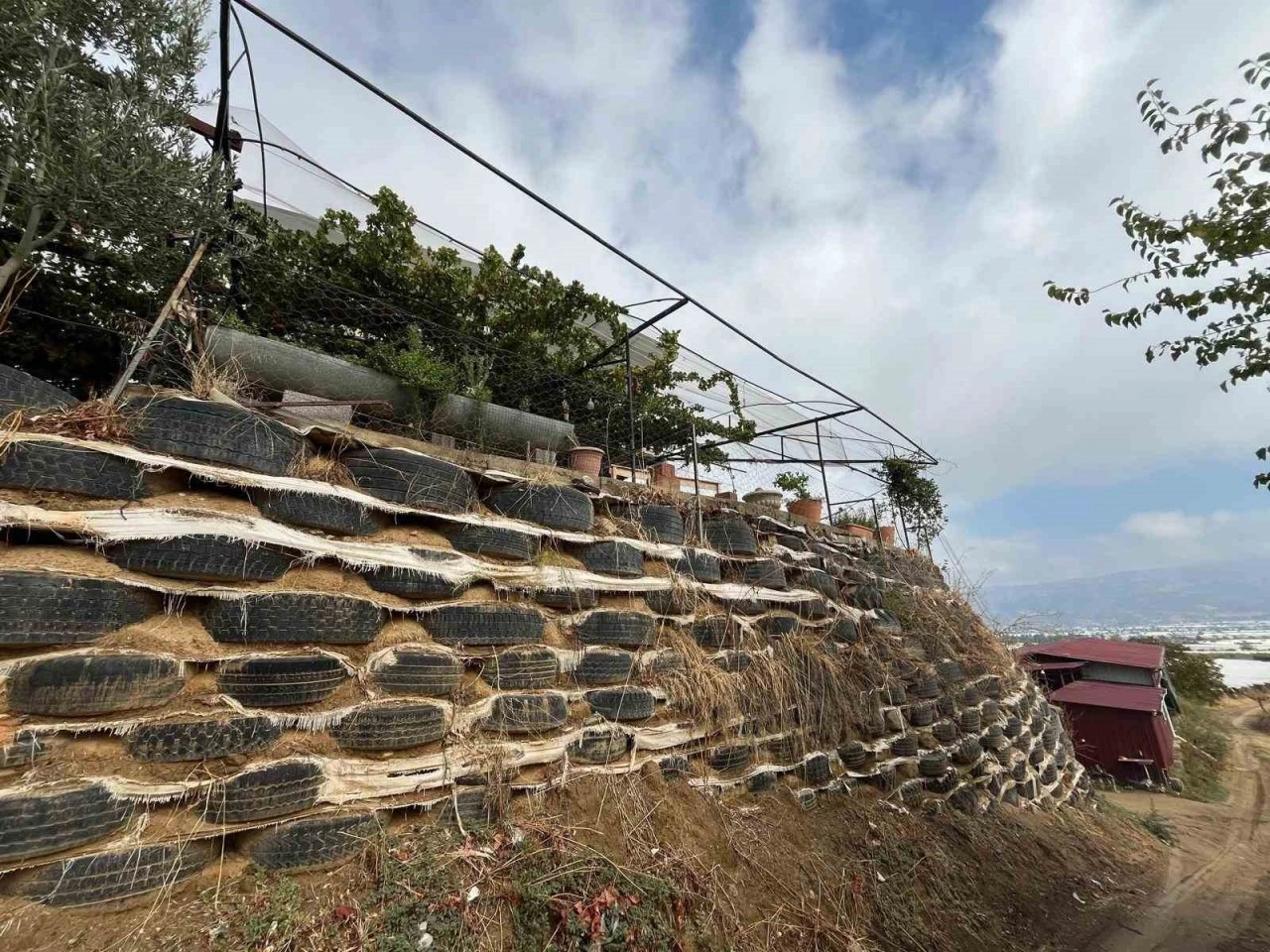 <div>Manisa’nın Sarıgöl ilçesinde bir çiftçi, artık ömrünü tamamlamış olan yüzlerce araç lastiğinden bağ evinin önüne set duvar ördü. Tamamen lastik ve içleri topraktan oluşan geri dönüşümün en güzel örneklerinden birini sergileyen duvar, hem toprak kaymasını önledi hem de çiçek ve sebzelere yuva oldu.</div> <div></div> <div>Sarıgöl ilçesi Emcelli Mahallesi’nde yaşayan çiftçi Ahmet Tosun, 7 yıl önce bağ evinin önünde olabilecek bir toprak kaymasını önlemek için farklı bir yöntem geliştirdi. Beton set duvar yerine maliyeti daha az olan üç tır dolusu ömrünü tamamlamış traktör ve kamyon lastiğiyle kale gibi bir duvar ören Tosun, hem evini korudu hem de geri dönüşüme örnek oldu.</div> <div></div> <div>Artık ömrünü tamamlayan ve kullanılamaz halde olan araç lastiklerinden kurduğu duvar sayesinde bağ evini tamamladığını kaydeden Tosun, "Bu duvarı yapmak için 3 tır dolusu lastik getirdim. Yetmeyince traktörlerle de çevreden uzunluğu 30 metre lastik getirdim. Evin önüne hem daha ucuz olduğu için hem de atık lastikleri değerlendirmek için bu duvarı ördüm" diyerek, lastiklerin aralarına çiçekler ve sebzeler ekerek duvarı da değerlendirdiğini anlattı.</div> <div></div> <div></div> <div><strong>Kaynak:</strong> IHA</div>