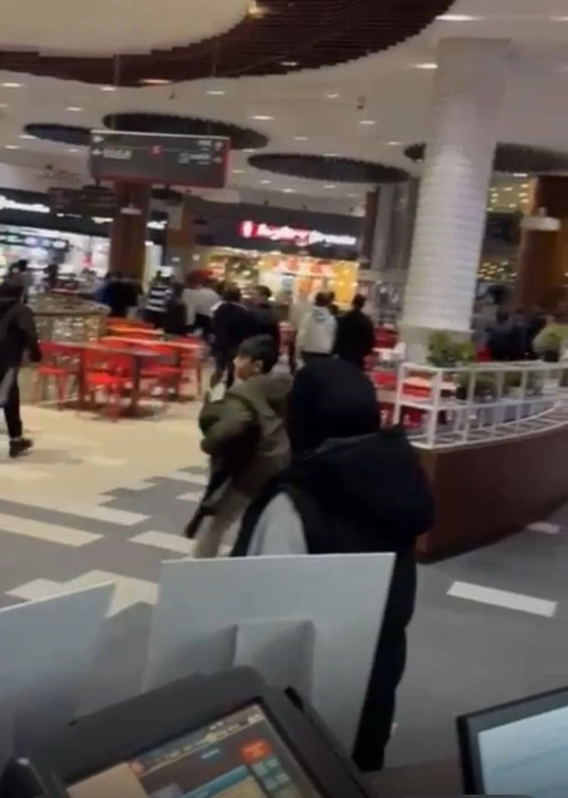 <div>Ataşehir’de bir alışveriş merkezinde 2 grup arasında kavga çıktı. Sandalyelerin havada uçuştuğu kavga cep telefonu kamerasına yansıdı.</div><div>İddiaya göre, 2 grup arasında henüz bilinmeyen bir nedenle tartışma çıktı. Tartışma kısa sürede büyüyerek kavgaya dönüştü. Taraflar birbirine sandalyelerle saldırdı. O anlar bir vatandaşın cep telefonu kamerasına yansırken, alışveriş merkezinde bulunan vatandaşlar büyük panik yaşadı.</div><div></div><div><b>Kaynak:</b> IHA</div>