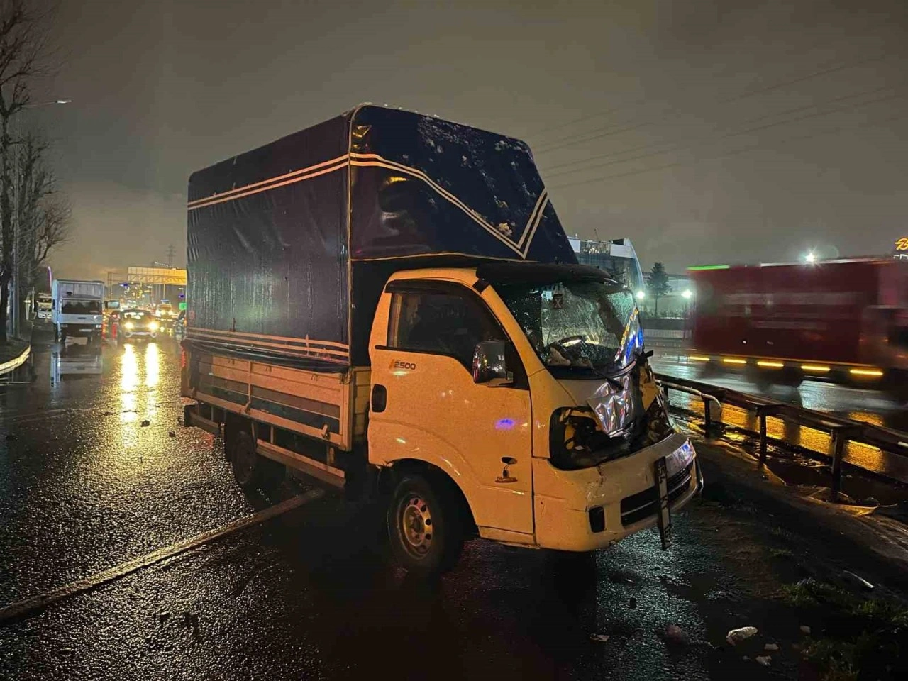 <div>Bahçelievler’de seyir halindeki iki kamyonetin karıştığı kazada bir sürücü yaralandı. Araçta sıkışarak itfaiye tarafından kurtarılan yaralı, ambulansla hastaneye kaldırıldı.</div><div>Olay, akşam saatlerinde İstanbul Bahçelievler Yenibosna Merkez Mahallesi Cemal Ulusoy Caddesi üzerinde meydana geldi. İddiaya göre, cadde üzerinde seyir halindeki 54 KT 187 plakalı kamyonet ile karşı istikametten gelen 34 EJ 8314 plakalı başka bir kamyonet henüz bilinmeyen bir nedenle çarpıştı. Kaza sonrası 54 KT 187 plakalı kamyonet sürücüsü araçta sıkıştı. İhbar üzerine olay yerine itfaiye, polis ve sağlık ekipleri sevk edildi. İtfaiye ekiplerince sıkıştığı yerden çıkarılan yaralı sürücü sağlık ekiplerinin müdahalesinin ardından ambulansla hastaneye kaldırıldı. Kaza nedeniyle trafikte bir süre aksama meydana geldi.</div><div>Kaza sonrası iki araç çekici yardımı ile kaldırıldı.</div><div></div><div><b>Kaynak:</b> IHA</div>
