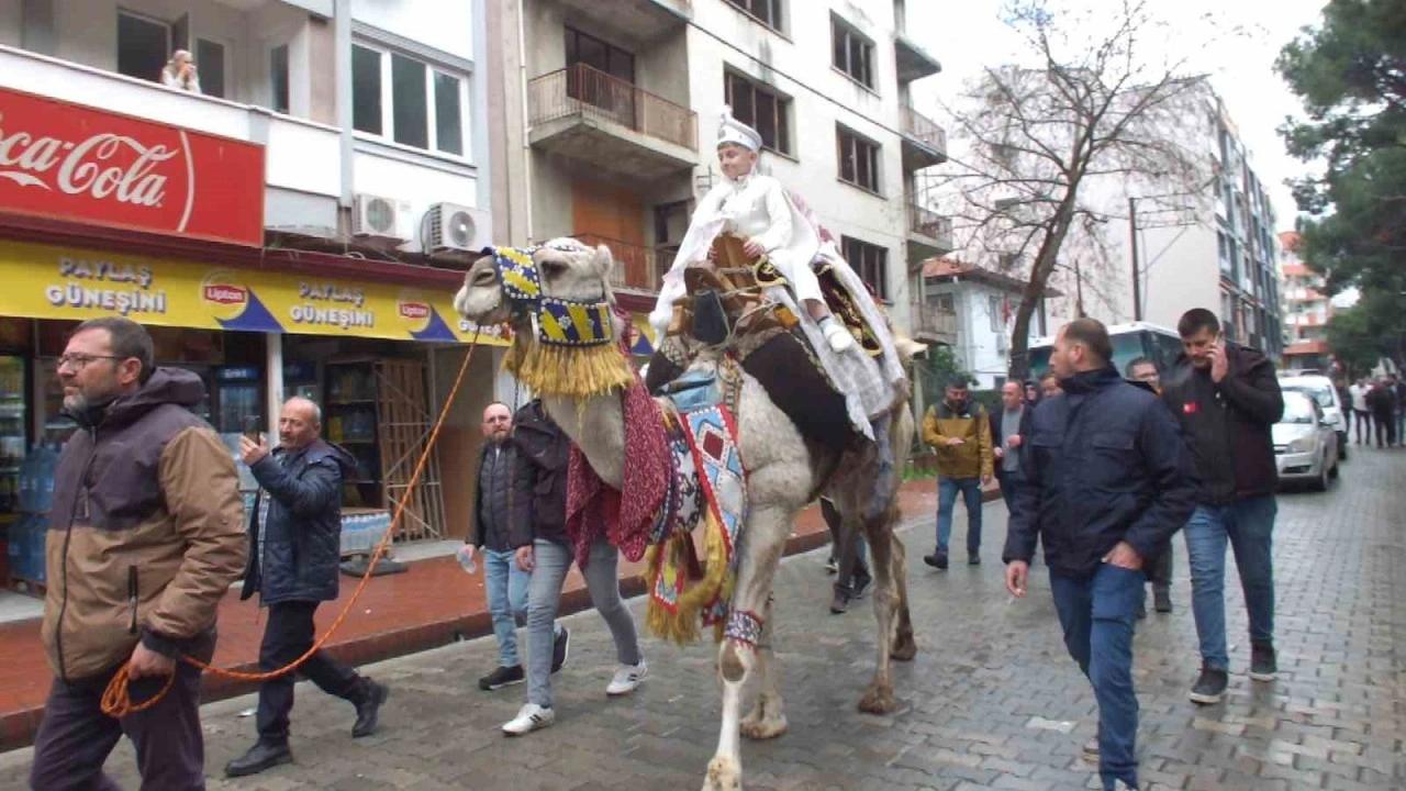 <div>Burhaniye ilçesinde, develi sünnet geleneği devam ederken, Ersan Erdoğan da, sünnet oğlu Caner Erdoğan’ı deve ile gezdirdi. Koca Cami önünde deveye bindirilen Faruk Kızıklı İlkokulu 2.Sınıf öğrencisi Caner Erdoğan’ı tekbirler eşliğinde Mahkeme Mahallesindeki evine getirdi.</div><div>Burhaniye’de deve kültürünü seven 45 yaşındaki Ersan Erdoğan, oğlu Caner Erdoğan’ı sünnet töreninde otomobil yerine deve ile gezdirdi. Koca Cami önünde deveye bindirilen Caner Erdoğan, bayraklar eşliğinde tekbirlerle evinin önüne getirildi. Evin önünde din görevlisi Ali Ulvi Çakır dua yaptı. Devecilik kültürünü yaşatmak istediklerini anlatan baba Ersan Erdoğan, oğlunun da deve ile gezmek istediğini söyledi. Baba Ersan Erdoğan, “ Bizde devecilik kültürü vardır. Sünnet çocuğumuzda deve istediği için böyle yaptık. Bizde de deveyi sevdiğimiz için dualarla deveye bindirdik. Evimizin önüne getirdik. Her şey çok güzel oldu. Katılan herkese teşekkür ediyoruz” dedi.</div><div></div><div><b>Kaynak:</b> IHA</div>