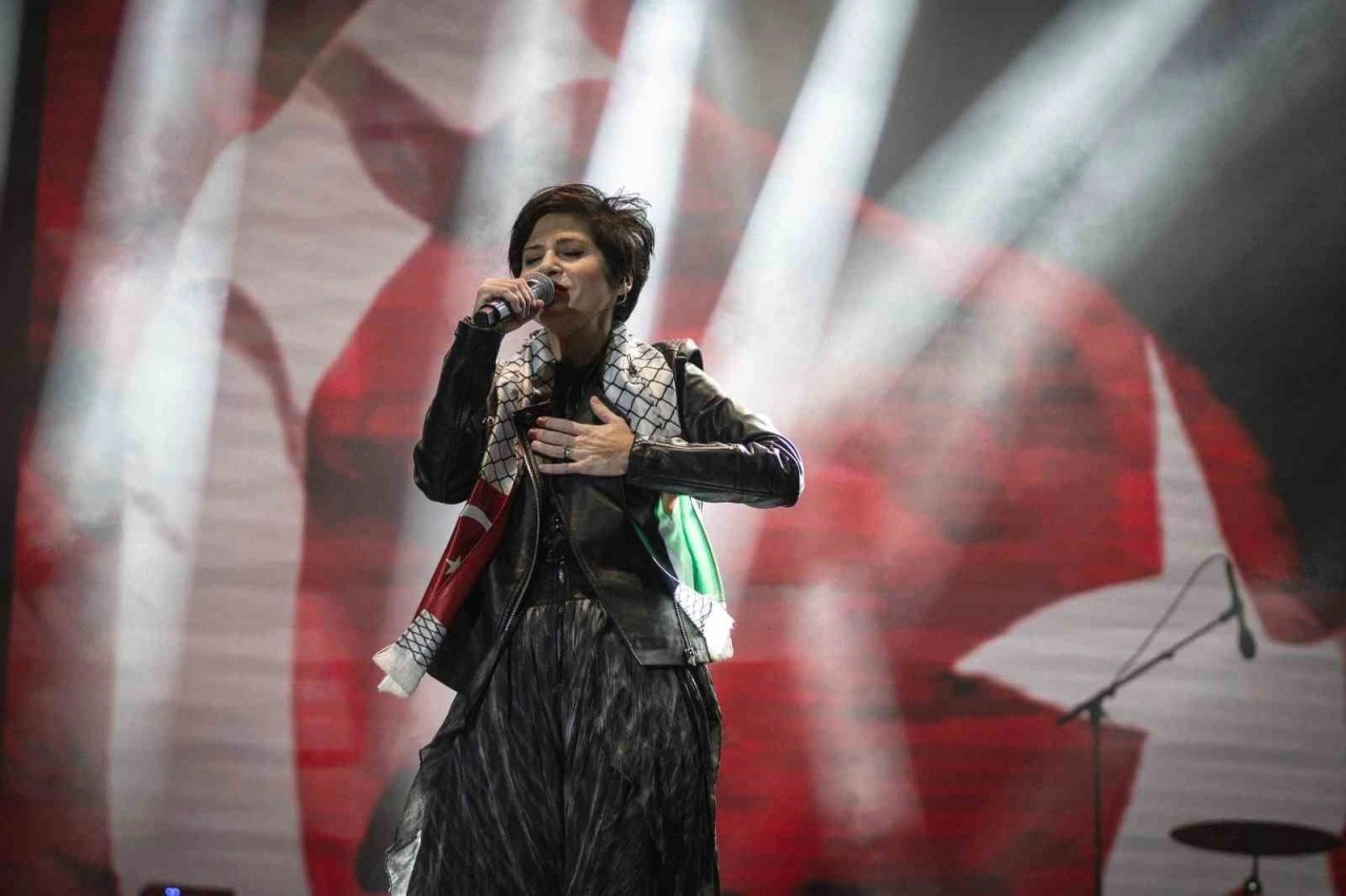 <div>Kültür ve Turizm Bakanlığı’nın, Yaşayan Miras ve Kültürel Etkinlikler Genel Müdürlüğü koordinasyonunda düzenlenen ’Bir Anadolu Şenliği’nin üçüncü gününde Bingöl’de sahne alan ünlü sanatçı Aydilge, İsrail’in Gazze’ye yönelik saldırılarına tepki gösterdi.</div> <div></div> <div>Bingöl Belediye Otopark Alanı’nda binlerce hayranıyla buluşan Aydilge, konserinin bir bölümünde Filistin’e ithafen ’Yalnızlık Masalı’ şarkısını seslendirdi. Sanatçı, "Sadece eğlenmek ve keyiflenmek için müzik yapmıyoruz. Bazen üzüntülerimizi, acılarımızı paylaşmak, anlatamadıklarımızı anlatmak için müzik bizim şifamız oluyor. Bu akşam da sizlerle, dünyada yapayalnız bırakılmış, acıları görünmeyen sevgili Filistinli kardeşlerimiz için bu şarkıyı söylemek istiyorum" dedi.</div> <div></div> <div>Konserine Filistin atkısı takarak devam eden Aydilge, "Filistinli kardeşlerimize dualarımızı ve iyi dileklerimizi hep birlikte gönderelim" diyerek şarkısını binlerce Bingöllü ile birlikte Gazze için söyledi.</div> <div></div> <div></div> <div><strong>Kaynak:</strong> IHA</div>