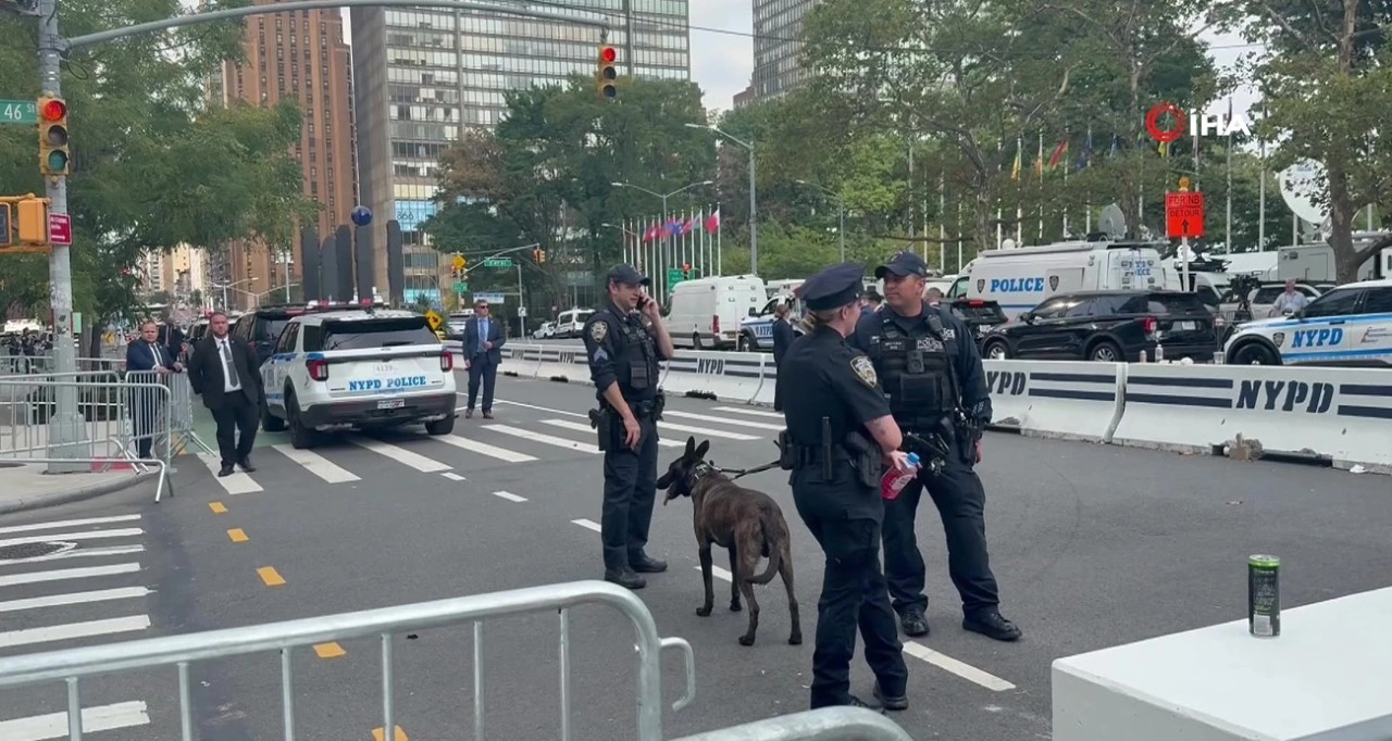 <div>Bölgede güvenlik K9 köpekleri ve demir bariyerlerle sağlanıyor. Ayrıca Federal Soruşturma Bürosu (FBI), BM polisi ve federal yönetime bağlı diğer güvenlik unsurları sokaklarda nöbet tutuyor. Türkevi’nin de bulunduğu 1. Cadde trafiğe kapatılırken polisler bölgede kuş uçurtmuyor. Zaman zaman bomba aramalarının da yapıldığı sokaklarda ABD Gizli Servisi de güvenliği sağlıyor. Olağanüstü güvenlik önlemlerinin alındığı New York sokaklarının büyük bir kısmı da trafiğe kapatıldı.New York sokaklarının yanı sıra çok sayıda helikopter gün boyu BM binası ve çevresinde denetim yapıyor. Ayrıca Hudson Nehri'nden de polis botları sürekli olarak görev yapıyor.</div><div><strong>Yaprak Mutlu - Dilek Kaya</strong></div><div><b>Kaynak:</b> IHA</div>