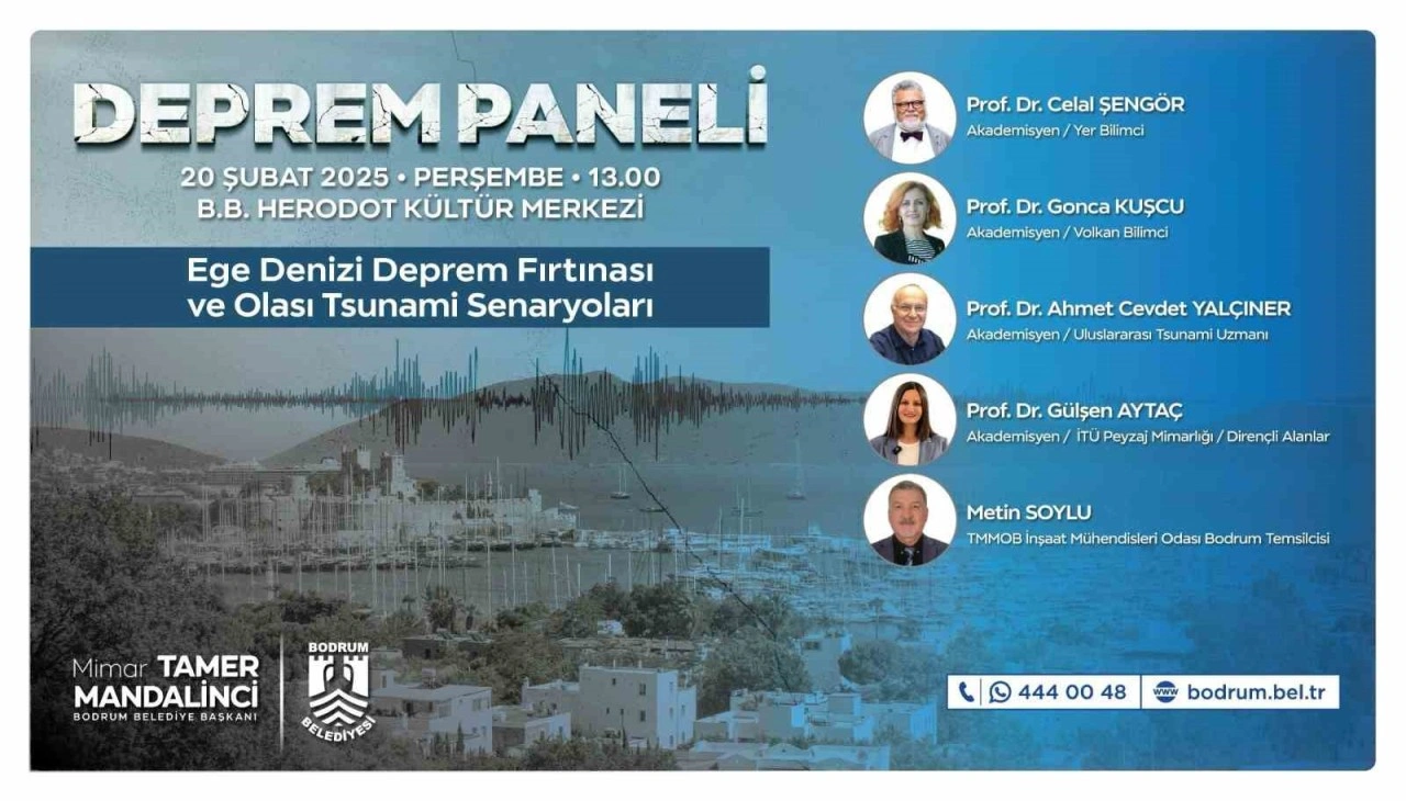 <div>20 Şubat Perşembe günü saat 13.00’te Herodot Kültür Merkezinde "Ege Denizi Deprem Fırtınası ve Tsunami Senaryoları" konulu Deprem Paneli düzenlenecek. Panelde Yer Bilimci Prof. Dr. Celal Şengör, Volkan Bilimci Prof. Dr. Gonca Kuşcu, Uluslararası Tsunami Uzmanı Prof. Dr. Ahmet Cevdet Yalçıner, Peyzaj Mimarı ve Şehir Plancısı Prof. Dr. Gülşen Aytaç ve TMMOB İnşaat Mühendisleri Odası Bodrum Temsilcisi Metin Soylu Ege denizindeki deprem fırtınası ve muhtemel tsunami senaryoları ile ilgili değerlendirmelerde bulunacak.</div> <div>Deprem fırtınaları ve bunların getireceği tsunami risklerinin konuşulacağı Deprem Panelinde bölgedeki deprem aktivitelerinin sıklığı, büyüklükleri ve tsunami ihtimalleri hakkında bilgilendirmeler yapılacak.</div> <div>Bodrum Belediye Başkanı Tamer Mandalinci, Bodrum Belediyesi olarak kenti muhtemel afetlere karşı dirençli hale getirmek için kamu kurum ve kuruluşları ile sivil toplum örgütleriyle iş birliği içinde çalışmalarına devam ettiklerini belirterek Deprem Paneli ile ilgili şunları söyledi:</div> <div>"Son günlerde gerek dünya gerekse ülke gündemini meşgul eden muhtemel Ege depremi ve tsunami riskine yönelik ilçe genelinde çalışmalarımız devam ediyor. Bu kapsamda düzenleyeceğimiz deprem panelinde, alanında uzman ve birbirinden kıymetli bilim insanlarıyla bir araya geleceğiz. Panelimiz, yalnızca akademik bir tartışma ortamı sunmakla kalmayacak, aynı zamanda Bodrum’un geleceğini güvence altına almak için güçlü bir adım olacak. Halka açık olarak gerçekleştireceğimiz panele tüm vatandaşlarımızı bekliyoruz. Hep birlikte, bilim ve dayanışmanın gücüyle daha güçlü bir Bodrum inşa edeceğiz."</div> <div></div> <div><strong>Kaynak:</strong> IHA</div>
