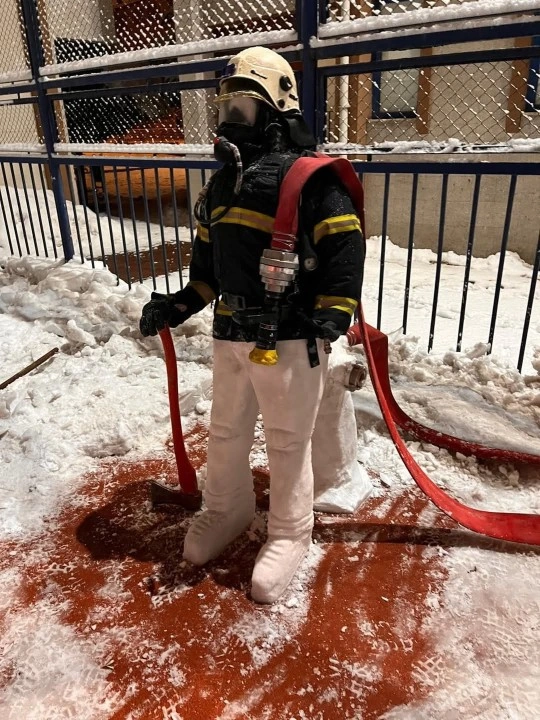 <div>Kayseri’de itfaiye ekipleri tarafından yapılan ’kardan itfaiye’ ilgi gördü.</div><div>Kayseri Büyükşehir Belediyesi İtfaiye Daire Başkanlığı ekipleri, kentte etkisini gösteren kar yağışı ile beraber zorda kalan vatandaşların yanlarında olmayı sürdürüyor. Vakanın olmadığı zamanda da dairenin bahçesinde kardan adam yapan ekipler, üzerine itfaiye elbisesi giydirdi. Elindeki hortumu ve hava maskesiyle gerçek bir itfaiyeci andıran kardan itfaiye, beğeni topladı.</div><div>Ekipler kardan itfaiyeyi ’böyle olur itfaiyecinin kardan adamı’ paylaşımı ile sosyal medya hesaplarında paylaştı.</div><div></div><div><b>Kaynak:</b> IHA</div>