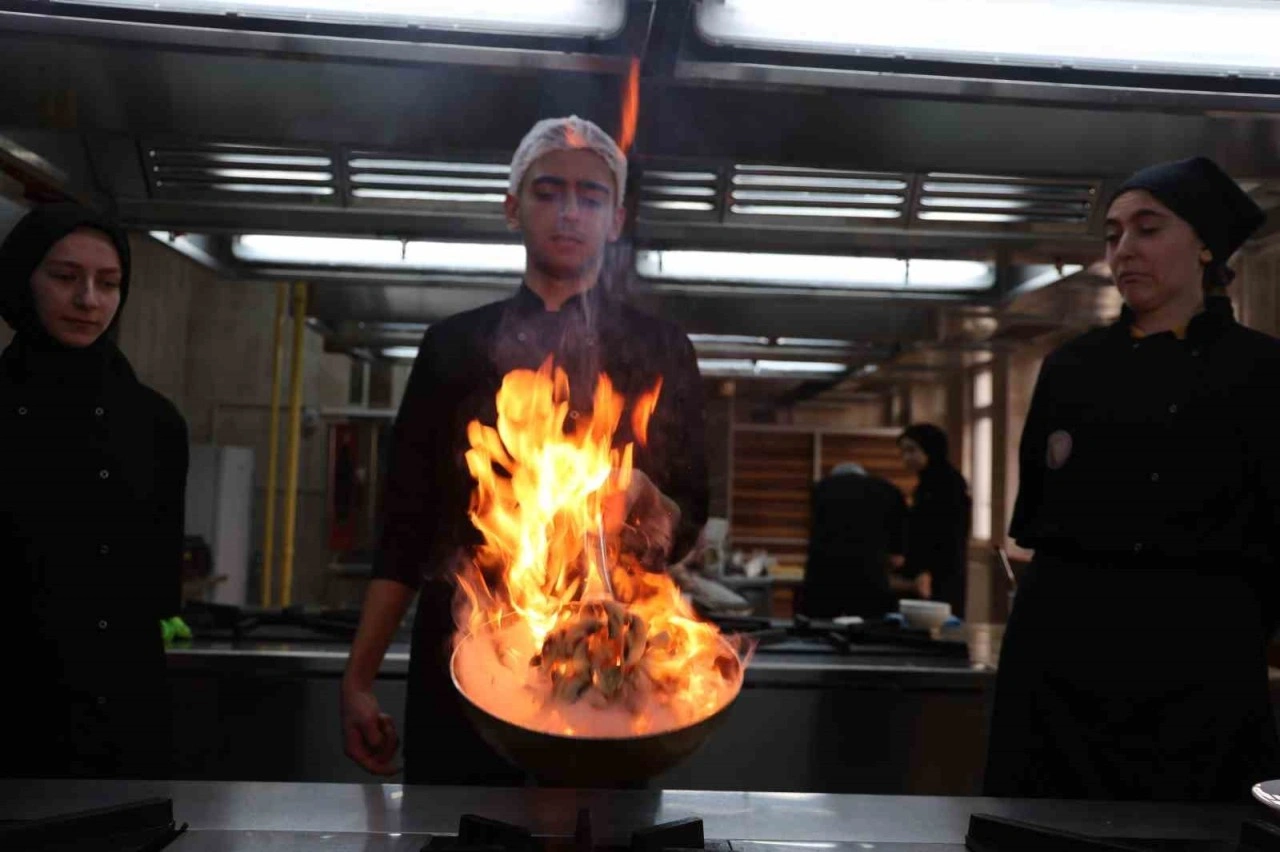 <div>Elazığ Şehit Mehmet Öter Turizm Mesleki ve Teknik Anadolu Lisesi, donanımlı atölyeler ve yurtdışı projeleriyle öğrencilerine aşçılıkta global kariyer fırsatları sağlıyor.</div><div>Elazığ Şehit Mehmet Öter Turizm Mesleki ve Teknik Anadolu Lisesi, 2008 yılından bu yana turizm sektörüne kaliteli elemanlar yetiştiriyor. Okul, özellikle yiyecek ve içecek hizmetleri alanında eğitim verirken, öğrencilere aşçılık gibi farklı dallarda uzmanlık kazandırıyor. Okul Müdürü Sadrettin Bayram okullarında konaklama, seyahat ve yiyecek-içecek hizmetleri gibi alanlarda öğrenci yetiştirdiklerini amaçlarının öğrencileri hem yurtiçinde hem de yurtdışında aranan profesyoneller haline getirmek olduğunu söyledi. Bayram, ’’Okulumuz, 2008 yılında eğitim öğretime açıldı. O günden bugüne turizm sektörüne aranılan eleman yetiştirmeye çalışıyoruz. Okulumuzda konaklama ve seyahat hizmetleri alanı ile yiyecek ve içecek hizmetleri alanı bulunmaktadır. Yiyecek ve içecek alanında görüldüğü üzere mutfak alanında özellikle aşçılık dalında öğrenci yetiştirmeye çalışıyoruz. İlimize ve ülkemize yönelik ciddi çalışmalar yürütüyoruz. Yurtdışı projeleri ile öğrencilerimizi desteklemeye çalışıyoruz. Yetişen öğrencilerimizi turizm sektöründe aranılan eleman konumuna getirmeye çalışıyoruz. Öğrencilerimizin iyi bir iş bulabilmeleri için elimizden geleni yapıyoruz’’ dedi.</div><div>Derslerin çoğunluğunun uygulamalı olduğunu belirten yiyecek içecek bölümü öğretmeni Süreyya Acar, " Öğrencilerle yoğun bir uygulama derslerimiz oluyor. Bütün günümüz daha çok mutfakta geçiyor. Fırıncılık, pasta ve ana meslek dersleri gibi farklı alanlarda çalışmalarımız var. Yoğun bir öğretim programımız var’’ diye konuştu.</div><div>Okulda sağlanan imkanlardan dolayı memnuniyetini dile getiren öğrencilerden Baran Arda, ’’Burada bize sundukları imkanlardan dolayı müdürümüze ve eğitimlerinden dolayı öğretmenlerimize çok teşekkür ediyorum. Burada donanımlı bir atölyede yaptığımız derslerde iyi eğitimler alıyoruz. Hollanda ve Antalya gibi yerlerde stajlar yaptım" şeklinde konuştu.</div><div>Öğrencilerden Sait Ortaç ise ’’Donanımlı atölyelerimiz var. Atölyelerimizde alanımızla alakalı güzel eğitimler alıyoruz. Onun yanı sıra yurtdışı projelerimiz var. Alanımızla alakalı yine eğitimler alıyoruz. Dil derslerimiz var. Üç farklı yabancı dil öğrenmemiz için eğitimlerimizi alıyoruz. Hedefimiz ileride dünyada aranılan bir aşçı başı olmak" dedi.</div><div>Yurtdışındaki eğitim fırsatlarından faydalanarak Kore’ye gittiğini belirten aşçılık bölümü öğrencilerden Sudem Kaya, ’’İşimi severek yapıyorum. Ayrıca okulumuzda yurtdışı projeler de mevcut. Yurtdışını görmek, gezmek büyük hayalimdi. Üç aylığına Kore’ye eğitim almaya gittim. Ayrıca burada öğrendiğimiz yemekler günlük hayatımızda da çok yardımcı oluyor. Korece dilini geliştirebilirsem yurtdışına çıkmayı planlıyorum" diye konuştu.</div><div></div><div><b>Kaynak:</b> IHA</div>