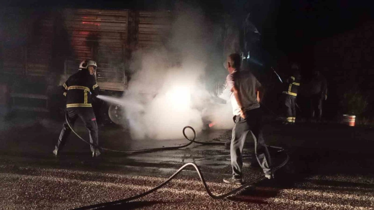 <div>Siirt-Baykan karayolu üzerinde seyir halindeki buğday yüklü tır, henüz belirlenemeyen bir nedenle alev aldı.</div><div>Edinilen bilgiye göre, 46 ZD 401 plakalı tırın dorsesinden yükselen alevleri gören sürücü, aracı yol kenarına çekerek durumu itfaiye ekiplerine bildirdi. Olay yerine sevk edilen itfaiye ekipleri, uzun uğraşlar sonucu yangını kontrol altına alarak söndürdü. Yangında maddi hasar meydana gelirken, can kaybı yaşanmadı. Yangının çıkış nedenine ilişkin inceleme başlatıldı.</div><div></div><div><b>Kaynak:</b> IHA</div>