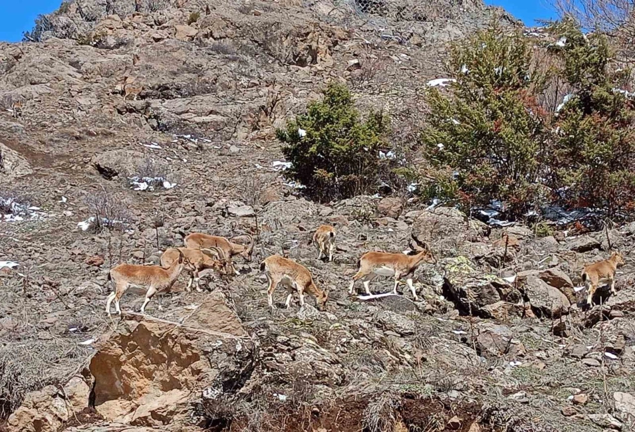<div>Doğanın uzman tırmanıcıları olarak bilinen dağların süsü dağ keçileri, Bayburt’un yüksek kesimli bir köyünün dağ eteklerinde görüldü. Sürü halinde gezen dağ keçiler, telefonu kamerasına yansıdı.</div> <div></div> <div>Dağ keçilerinin görüldüğü güzergâhtan geçen bir vatandaş, "Hay kuzular, hay ceylanlar" diyerek, nesli tükenme tehlikesi bulunan, avlanması yasak ve koruma altındaki dağ keçilerini cep telefonuyla kaydetti. Vatandaşın cep telefonu kamerasına yansıyan görüntülerde, sürü halinde gezen keçilerin, sarp ve engebeli dik tepeyi kolaylıkla tırmandığı görülüyor.</div> <div></div> <div></div> <div><strong>Kaynak:</strong> IHA</div>