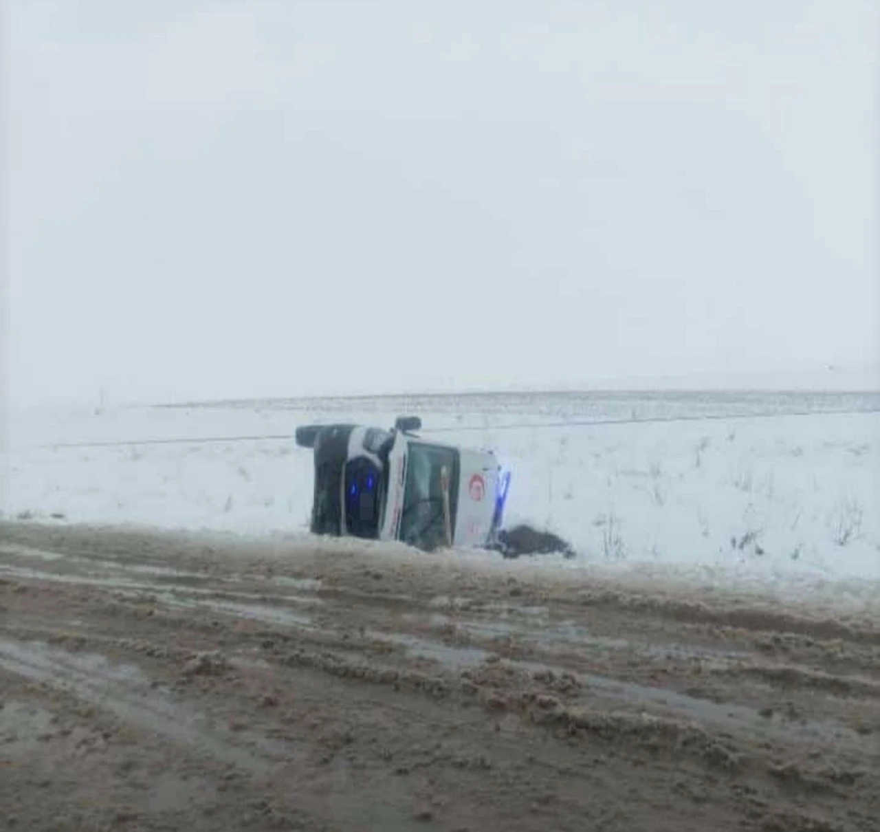 <div>Diyarbakır’ın Bismil ilçesinde, zorlu kış koşulları altında görev yapan sağlık ekibini taşıyan ambulans devrildi. Kaza, Bismil-Batman kara yolunun Çöltepe mevkiinde meydana geldi.</div> <div>Edinilen bilgilere göre, görevli sağlık ekibini taşıyan ambulans, yolun kayganlaşması nedeniyle kontrolden çıkarak devrildi. Kazada araçta bulunan 3 sağlık personeli yaralandı. Olayın haber verilmesi üzerine bölgeye meslektaşları ve güvenlik güçleri sevk edildi.</div> <div>Yaralı sağlık çalışanları, olay yerinde yapılan ilk müdahalenin ardından başka bir ambulansla hastaneye kaldırıldı. Yetkililer, kazayla ilgili soruşturma başlatıldığını ve vatandaşları zorlu kış şartlarında 112 hattını yalnızca acil durumlar için aramaları konusunda uyardı.</div> <div>Güvenlik güçleri ve sağlık ekipleri, kara yolunda güvenliği sağlamak ve benzer kazaların önüne geçmek için çalışmalarını sürdürüyor.</div> <div></div> <div>KAYNAK : İHA</div>