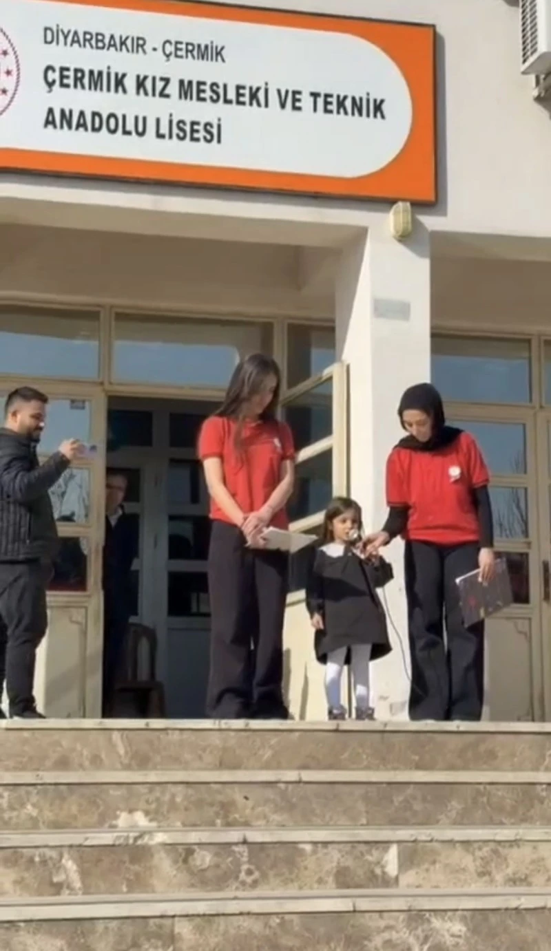 <div>Diyarbakır’ın Çermik ilçesinde bulunan Çermik Kız Mesleki ve Teknik Anadolu Lisesi’nde gerçekleştirilen 12 Mart İstiklal Marşı’nın Kabulü ve Mehmet Akif Ersoy’u Anma Günü etkinliği, anlamlı bir performansa sahne oldu. Okul bünyesindeki ana sınıfında eğitim gören 4 yaşındaki Beste Duru Yıldız, İstiklal Marşı’nın ilk dört kıtasını ezbere okuyarak büyük beğeni topladı.</div> <h5></h5> <div>Okul bahçesinde düzenlenen törende öğrenciler ve öğretmenler tarafından ilgiyle izlenen küçük Beste’nin performansı, katılımcılara duygu dolu anlar yaşattı. Henüz 4 yaşında olmasına rağmen İstiklal Marşı’nın dört kıtasını ezbere okuyan minik öğrenci, tören alanında uzun süre alkışlandı.</div> <div>Beste’nin babası Semih Yıldız, kızının bu anlamlı günde İstiklal Marşı’nı okumasından büyük gurur duyduğunu ifade ederek, emeği geçen öğretmenlere teşekkür etti. Yıldız, “Kızımın İstiklal Marşımızı ezberlemesi ve anma etkinliğinde okuması bizim için büyük bir gurur kaynağı oldu. Bu süreçte emeği olan öğretmenlerine ve ona destek olan ablalarına teşekkür ediyorum. Bu vesileyle İstiklal Marşı’mızın şairi Mehmet Akif Ersoy’u ve aziz şehitlerimizi rahmetle anıyorum” dedi.</div> <div></div> <div>Törende gerçekleştirilen anma programı, öğrencilerin hazırladığı çeşitli etkinliklerle devam etti. Özellikle küçük Beste’nin performansı, programın en dikkat çeken ve en çok alkış alan anlarından biri oldu.</div> <div></div> <div></div> <div></div> <div></div> <div></div> <div></div> <div></div> <div></div> <div></div> <div></div> <div></div> <div></div> <div></div> <div></div> <h4>KAYNAK : İHA</h4>