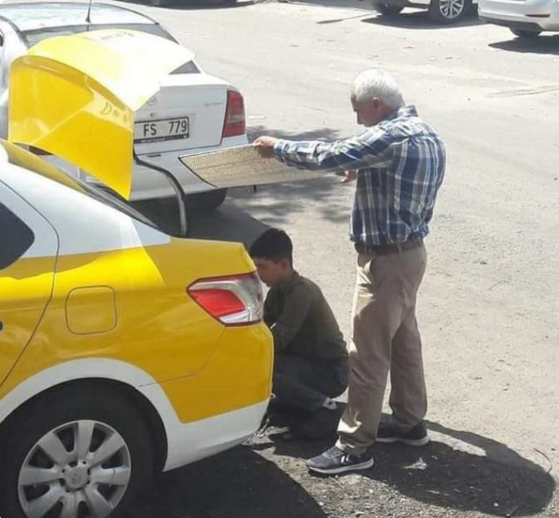 <div>Güneydoğu Anadolu’yu etkisi altına alan aşırı sıcaklar hayatı olumsuz etkilemeye devam ederken, Diyarbakır'da yaşanan bir iyilik anı, görenlerin içini serinletti.</div> <div>Merkez Kayapınar ilçesindeki oto sanayi sitesinde çalışan küçük bir tamirci çırağı, 45 dereceyi bulan sıcaklıkta görevini sürdürmeye çalışırken, bir vatandaşın yaptığı davranış takdir topladı.</div> <div>Görüntülere yansıyan olayda, yaşları 10-12 civarında olduğu tahmin edilen çırak, asfalt üzerinde araç tamir ederken yakıcı güneşin altında kalınca, oradan geçen bir vatandaş duruma kayıtsız kalmadı.</div> <div>Elindeki şemsiyeyi çocuğun üzerine tutarak onu bir nebze olsun serinletmeye çalışan duyarlı insan, çevredekilerin de dikkatini çekti.</div>