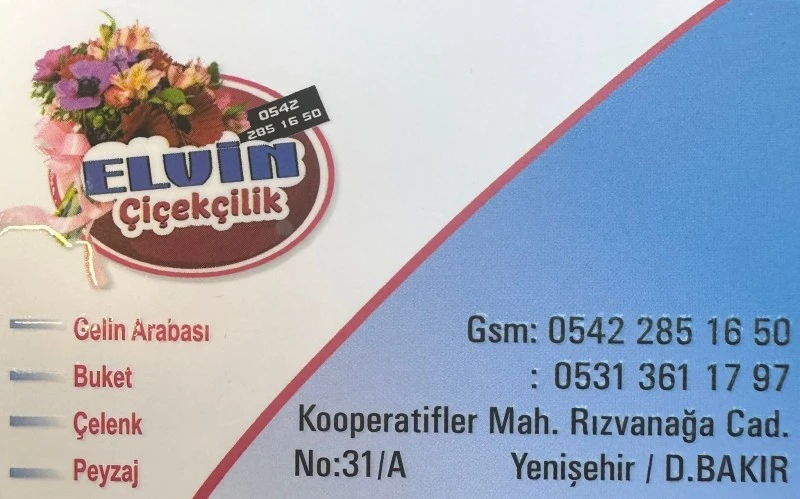 <div></div> <div>Yenişehir’de faaliyet gösteren Elvin Çiçekçilik, düğün hazırlıkları yapan çiftlere ve özel günlerini renklendirmek isteyen vatandaşlara farklı seçenekler sunuyor. Gelin arabası süslemeleri, özel gün buketleri, açılış çelenkleri ve peyzaj çalışmaları işletmenin öne çıkan hizmetleri arasında yer alıyor.</div> <h2>Profesyonel Çalışma, Özgün Tasarımlar</h2> <div>İşletme sahibi Berat Atan, her müşterinin talebine özel çözümler geliştirdiklerini vurguluyor. Özellikle düğün sezonunda yoğun ilgi gören çiçekçilik hizmetlerinde modern tasarımlar ve kaliteli malzemelerle fark yaratmayı amaçladıklarını ifade ediyor.</div> <h2>İletişim Bilgileri</h2> <div>Elvin Çiçekçilik’e ulaşmak isteyenler <strong>Kooperatifler Mahallesi, Rızvanağa Caddesi No:31/A, Yenişehir/Diyarbakır</strong> adresini ziyaret edebilir. İşletmeye ayrıca <strong>0542 285 16 50</strong> ve <strong>0531 361 17 97</strong> numaralı telefonlardan da ulaşmak mümkün.</div> <div></div>