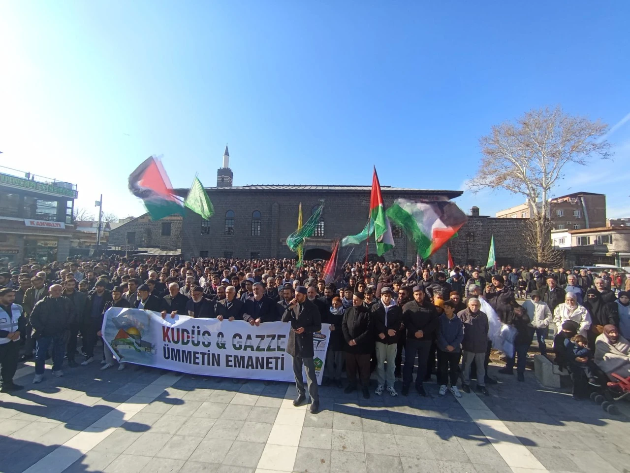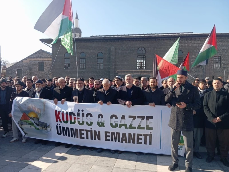 <div>Diyarbakır’ın Sur ilçesinde bulunan Ulu Camii önünde, Diyarbakır Peygamber Sevdalıları Derneği tarafından Dünya Kudüs Haftası kapsamında Kudüs ve Gazze adına basın açıklaması gerçekleştirildi. Programa çok sayıda sivil toplum kuruluşu temsilcisi, basın mensupları ve vatandaşlar katıldı.</div> <h3><strong>“</strong><strong>Kudüs, Ümmetin Ortak Vicdanıdır”</strong></h3> <div>Basın açıklamasını İttihadul Ulema üyesi Molla Nazım Şimşek yaptı. Konuşmasına “Bismillahirrahmanirrahim” diyerek başlayan Şimşek, Kudüs’ün sıradan bir şehir olmadığını vurgulayarak, “Kudüs; ümmetin haremi, ilk kıblesi, Peygamber Efendimizin (sav) miraç durağıdır. Bu topraklar, insanlığın düşmanı olan Siyonist işgalden arınmayı beklemektedir. Bu, akidevi ve tarihi bir sorumluluktur.” dedi.</div> <div></div> <h3><strong>“Kudüs’ü Konuşmak İnsanlığı Konuşmaktır”</strong></h3> <div>Kudüs’ün üç semavi din için kutsal olduğuna dikkat çeken Şimşek, Kudüs’ü konuşmanın insanlığı konuşmak anlamına geldiğini belirterek, “Bu şehir Hz. İbrahim’den Hz. Muhammed Mustafa’ya (sav) uzanan bir iman mirasıdır. Kudüs’e uzanan her el, ümmetin kalbine uzanmış olur.” ifadelerini kullandı.</div> <h3><strong>“Bu Bir İşgal Rejimidir”</strong></h3> <div>Filistin topraklarında yaşananların tesadüf olmadığını vurgulayan Şimşek, İsrail’in uygulamalarının sistematik ve ideolojik bir yayılmacılığın sonucu olduğunu söyledi. Yerleşim adı altında gasp edilen topraklar, zorla göç ettirilen aileler, tutuklanan çocuklar ve kutsal mekânlara yönelik baskıların bir işgal rejiminin açık göstergesi olduğunu dile getirdi.</div> <h3><strong>Gazze, Dünyanın En Büyük Açık Hava Hapishanesi</strong></h3> <div>Gazze’de yaşanan insanlık dramına da değinen Şimşek, “Gazze; karadan, havadan ve denizden kuşatılmış bir halkın hayatta kalma mücadelesidir. Elektriksiz hastaneler, ilaçsız yaralılar, temiz suya ulaşamayan çocuklar bu zulmün sonucudur. Gazze bugün dünyanın en büyük açık hava hapishanesidir.” dedi.</div> <div></div> <h3><strong>“Kudüs ve Gazze Aynı Davanın Parçasıdır”</strong></h3> <div>Kudüs’te yaşanan acıların Gazze’den bağımsız olmadığını vurgulayan Şimşek, Kudüs’ü savunmanın Gazze’yi görmeden mümkün olmayacağını ifade etti. Kur’an-ı Kerim ve hadislerden örnekler veren Şimşek, Mescid-i Aksa’nın ümmete emanet olduğunu hatırlattı.</div> <h3><strong>Uluslararası Topluma ve İslam Dünyasına Çağrı</strong></h3> <div>Konuşmasında uluslararası topluma ve Müslüman ülkelere çağrıda bulunan Şimşek, İsrail’in işgal politikalarının artık görmezden gelinemeyeceğini belirterek, “Siyonist yayılmacılık yalnızca bölgesel değil, insani bir tehdittir. Zulüm karşısında sessizlik, zalimin en büyük destekçisidir.” dedi.</div> <h3><strong>“Kudüs Özgür Olana Kadar Mücadele Sürecek”</strong></h3> <div>Basın açıklamasının sonunda Kudüs ve Gazze’nin gündemden düşürülmemesi gerektiğini vurgulayan Şimşek, maddi ve manevi bir seferberliğin zorunlu olduğunu ifade etti. Şimşek, “Kudüs özgür olana, Mescid-i Aksa huzura kavuşana ve Filistinli çocuklar umutla uyanana kadar bu dava gündemimizde olmaya devam edecektir.” diyerek açıklamayı dua ile sonlandırdı.</div> <div> </div>
