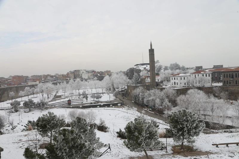 <div>Diyarbakır’da son günlerde etkisini artıran soğuk hava dalgası, kent genelinde kışın sert yüzünü hissettirdi. Gece saatlerinde hava sıcaklıklarının sıfırın altına düşmesiyle birlikte birçok noktada kırağı oluşurken, yağış öncesi ortaya çıkan manzaralar adeta kartpostalları aratmadı.</div> <div></div> <div>Tarihi Sur ilçesinde yer alan Hevsel Bahçeleri, Hazreti Süleyman yerleşkesi ve sur diplerindeki yeşil alanlar, kırağının etkisiyle beyaz örtüyle kaplandı. Ağaç dalları ve bitki örtüsünü saran kırağı, bölgeye ayrı bir güzellik katarken, ortaya çıkan görüntüler vatandaşların da ilgisini çekti.</div> <div></div> <div>Tarihi ve doğal dokusuyla öne çıkan Sur ve çevresi, soğuk havanın etkisiyle kış manzaralarına sahne oldu. Sabahın erken saatlerinde bölgeyi ziyaret eden birçok kişi, bu eşsiz anları cep telefonlarıyla kayda aldı.</div> <div></div> <div>Meteoroloji yetkililerinden alınan bilgilere göre, bugün sabah saatlerinden itibaren bazı bölgelerde sağanak yağış etkili olurken, ilerleyen günlerde Diyarbakır’da soğuk hava dalgasının yeniden etkisini artırması bekleniyor. Kent genelinde buzlanma ve don riskine karşı vatandaşların dikkatli olması istendi.</div> <div></div> <div></div> <div>KAYNAK: İLKHA</div>
