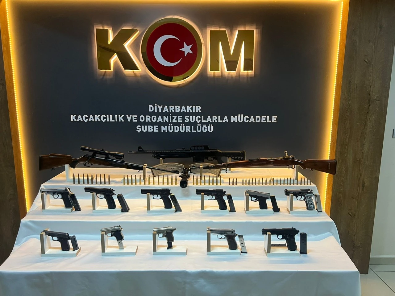 <div>Diyarbakır İl Emniyet Müdürlüğü Kaçakçılık ve Organize Suçlarla Mücadele Şube Müdürlüğü, Diyarbakır Cumhuriyet Başsavcılığı koordinesinde önemli bir operasyona imza attı. </div> <div>Polis ekipleri tarafından Diyarbakır ve çevre illerdeki organize suç örgütlerine silah temin ederek suç işlemeye aracılık eden ve silah kaçakçılığı yaparak haksız kazanç elde eden kişilere yönelik yapılan çalışmalarda, şüphelilerin çok sayıda silah sevkiyatı gerçekleştireceği bilgisi elde edildi.Bu bilgiler üzerine Diyarbakır ve çevresindeki 2 ilde eş zamanlı operasyon düzenlendi. 12 Mart 2025 tarihinde gerçekleştirilen operasyonda 17 şüpheli gözaltına alındı. Yapılan aramalarda, şüphelilerin polise yakalanmamak amacıyla kargo şirketi araçlarına özel bölümler yaptıkları ve bu bölümlerde silahları sakladıkları tespit edildi. </div> <div>Operasyonda ele geçirilen silahlar arasında 3 adet uzun namlulu tüfek, 11 adet tabanca ve 500 adet fişek bulunuyor. Şüphelilerin Diyarbakır KOM Şube Müdürlüğü’ndeki işlemleri devam sürerken, Diyarbakır İl Emniyet Müdürlüğü, silah ve mühimmat kaçakçılığının önlenmesi ve toplum huzurunun sağlanması amacıyla mücadelesine kararlılıkla devam edeceğini açıkladı. </div>