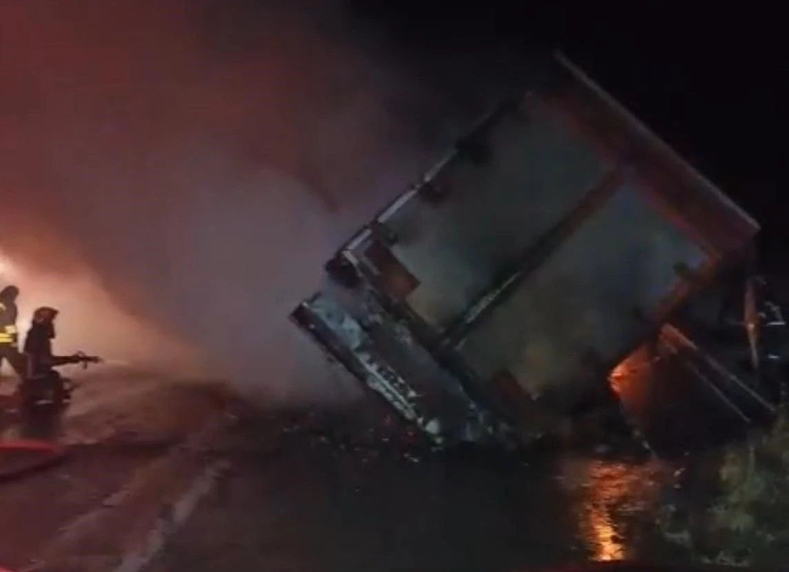 <div></div> <div>Edinilen bilgilere göre, Diyarbakır’ın merkez Bağlar ilçesi Oğlaklı Mahallesi’nde gece saatlerinde trafik kazası yaşandı. Direksiyon hâkimiyetini kaybeden sürücünün kullandığı tır yol kenarına devrildi. Kaza sonrası tır kısa sürede alev aldı.</div> <h3>Sürücü Hafif Yaralandı</h3> <div>Yangının başlamasıyla birlikte araçtan çıkmayı başaran sürücü hafif şekilde yaralandı. Olay yerine sevk edilen sağlık ekipleri yaralı sürücüye ilk müdahaleyi yaptı.</div> <h3>İtfaiye Alevleri Kontrol Altına Aldı</h3> <div>Kazayı gören vatandaşların ihbarı üzerine bölgeye jandarma, sağlık ve itfaiye ekipleri sevk edildi. İtfaiye erlerinin yoğun müdahalesi sonucunda alevler kontrol altına alınarak yangın tamamen söndürüldü.</div> <h3>Kazayla İlgili Soruşturma Başlatıldı</h3> <div>Maddi hasarın büyük olduğu kazaya ilişkin inceleme başlatıldığı öğrenildi. Tırın neden kontrolden çıktığı ve yangının çıkış sebebiyle ilgili araştırmalar sürüyor.</div>