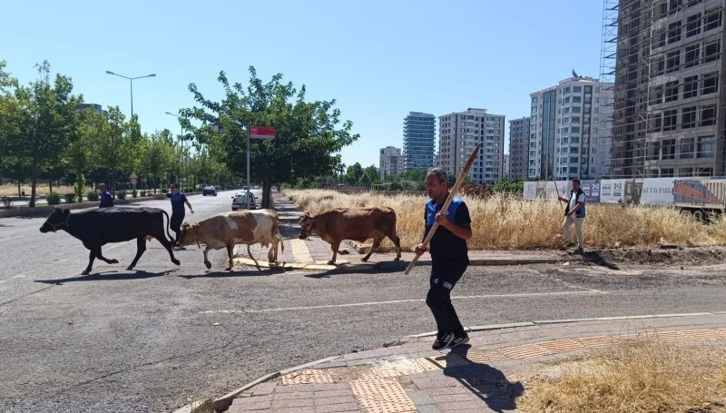 <div>Diyarbakır’ın Kayapınar ilçesinde zabıta ekipleri uyarı ve bilgilendirme yapmasına rağmen başıboş bırakılan büyükbaş hayvanları toplayarak sahiplerine cezai işlem uyguladı.</div> <div></div> <div>Zabıta ekipleri çalışmayla 6 büyükbaş hayvanı toplayarak belediye ait şantiye alanına götürdü.</div> <div></div> <div>Belediyenin zabıta müdürlüğü tarafından yapılan açıklamada, “ Uyarı ve bilgilendirme yapmamıza rağmen hayvan sahipleri maalesef hayvanlarını başıboş bırakıyorlar. Hayvanlar trafiği tehlikeye koyduğu gibi yeşil alanlara zarar veriyorlar. Yeşil alanlardaki fıskiye başlıklarını kırıyorlar. Topladığımız hayvan sahiplerine Kabahatler Kanunu’nun 32. Madde’nde yer alan İdari Yaptırım Maddesi’ne göre 2952 tele para cezası kestik ve uyarılarda bulunduk. Aynı durumun tekrarında daha büyük cezai işlem uygulayacağız” denildi.</div>
