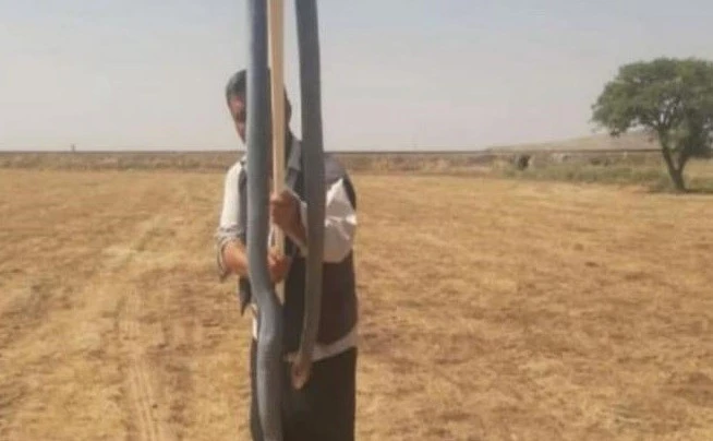 <div>Diyarbakır’ın Ergani ilçesinde yaşanan olay görenleri hem şaşırttı hem de korkuttu. İlçeye bağlı kırsal bir alanda tarlasında çalışmakta olan bir vatandaş, toprakla uğraştığı sırada aniden devasa bir yılanla karşılaştı. İlk bakışta neye uğradığını şaşıran çiftçi, yılanın yaklaşık 5 metreye yakın olduğunu fark edince hemen harekete geçti.</div> <div>Çevrede kimsenin olmaması üzerine yılanı kendi imkânlarıyla etkisiz hale getiren vatandaş tuttuğu yılanın uzunluğu ve kalınlığı dikkat çekerken, bölge halkı ilk defa bu büyüklükte bir yılan gördüklerini ifade etti.</div> <div></div> <div>Yetkililer, bu tür yaban hayvanlarıyla karşılaşılması durumunda vatandaşların dikkatli olmaları ve mümkünse doğrudan müdahale etmemeleri gerektiğini belirtti. Uzmanlar ise sıcak havaların etkisiyle yılanların daha sık görülmeye başladığını vurguladı.</div> <div>Öte yandan, etkisiz hale getirilen dev yılanın türü ve zehirli olup olmadığı konusunda bilgiye ulaşılamadı.</div>