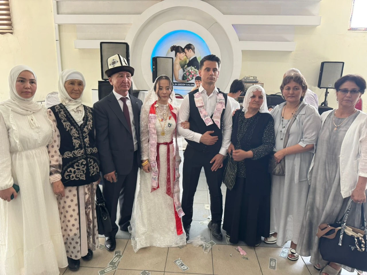 <div> </div> <div>Diyarbakır bu kez uluslararası bir düğüne ev sahipliği yaptı. Dicle İlçesinde yaşayan Mehmet Ali Tuna, hayatını Kırgızistanlı Zhyrgalbekova ile birleştirdi. İlçede düzenlenen düğün töreni, son yıllarda yapılan en renkli düğün oldu. İlçe halkının da yoğun katılımıyla renkli görüntülere sahne oldu.</div> <div> </div> <div>Kırgız gelenekleri ile bölge adetlerinin harmanlandığı düğünde, davetliler halaylarla ve Kırgız ezgileriyle coştu. Farklı kültürlerin buluştuğu törende hem damat hem de gelin tarafı büyük mutluluk yaşadı.</div> <div>Dicle’de ilk kez bir Kırgız gelinin konuk olduğu düğün, ilçe halkı tarafından ilgiyle karşılandı.</div>