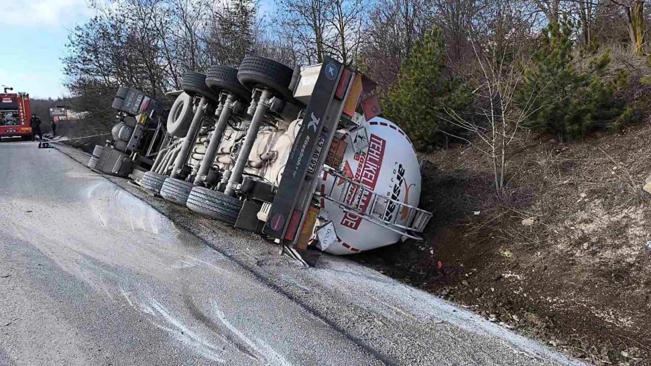 <div>Eskişehir’de henüz bilinmeyen bir sebeple kaza yapan akaryakıt yüklü tir şarampol devrilirken sürücü hayatını kaybetti.</div><div>Kaza, Eskişehir İnönü ilçesinde meydana geldi. Edinilen bilgiye göre, Kocaeli’nin Derince ilçesinden Kütahya’ya akaryakıt taşıyan 43 AG 971 plakalı tır, İnönü ilçesine yaklaştı sırada henüz bilinmeyen bir sebeple kaza yaptı. Olay yerine çok sayıda itfaiye, polis, jandarma, AFAD ve 112 Acil Sağlık Ekibi sevk edildi. Şarampole devrilen tır sürücüsü Ahmet Safa Battal’ın hayatını kaybettiği belirlendi.</div><div>Olay yerine gelen ekipler, muhtemel risklere mukabil güvenlik önlemleri alırken, tankerden herhangi bir sızıntı tespit edilmedi. Sürücünün cansız bedeni sıkıştığı tırdan ekiplerce çıkarıldı. Vinç yardımı ile tır olay yerinden kaldırıldı. Kaza ile ilgili inceleme başlatıldı.</div><div></div><div><b>Kaynak:</b> IHA</div>
