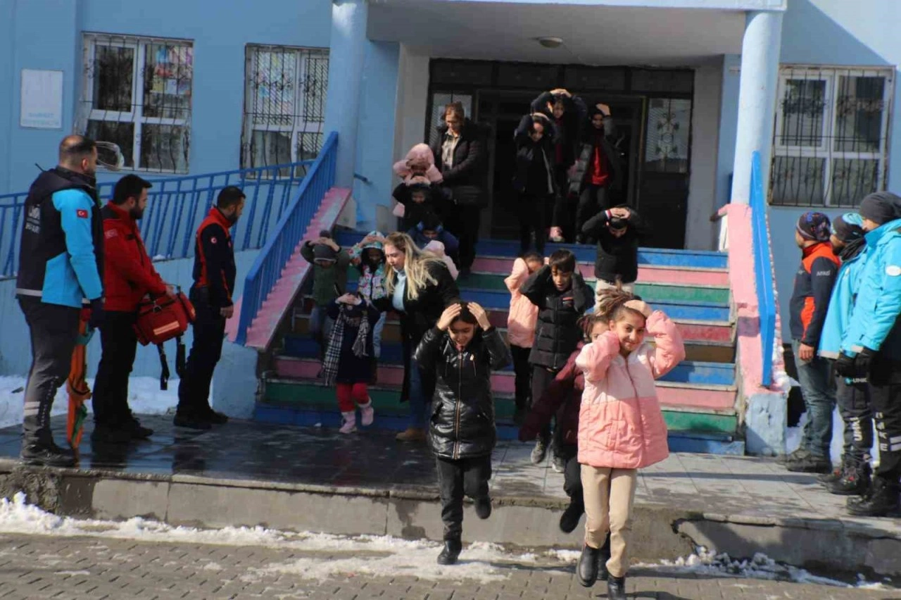 <div>24 sınıflı ve 580 öğrencinin eğitim öğretim gördüğü Cumhuriyet İlk ve Ortaokulunda sınıflarda muhtemel bir depreme karşı yapılabilecek önlemler hakkında uygulamalı olarak bilgi verildi. Verilen deprem alarmıyla idareciler, öğretmenler ve öğrenciler, "çök, kapan, tutun" hareketi ile oluşturdukları güvenli noktada kendilerini korumaya aldı.</div> <div></div> <div>Alarmın sona ermesiyle binalar tahliye edildi. Tatbikatta sınıf ve diğer alanların planlı şekilde boşaltılması, önceden belirlenen toplanma alanlarında izdihama yol açılmadan toplanılması sağlandı.</div> <div></div> <div>İl Afet ve Acil Durum İl Müdürlüğü yetkilileri, 6 Şubat depreminin 2. yıl dönümünde etkinlik ve faaliyetleri kapsamında AFAD İl Arama ve Kurtarma Ekibi, UMKE, Milli Eğitim Müdürlüğü Arama Kurtarma, 112 Ambulans Ekibi ile birlikte Cumhuriyet İlk ve Ortaokulunda sınıflarda afet farkındalık eğitimi verilerek ‘Deprem Anı Tahliye Tatbikatı’ gerçekleştirildiğini ifade ettiler.</div> <div></div> <div></div> <div><strong>Kaynak:</strong> IHA</div>