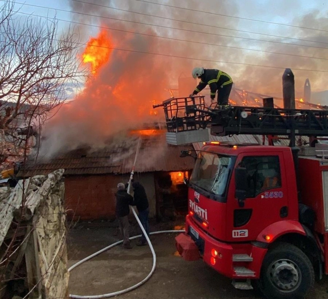 <div>Edinilen bilgiye göre, ilçeye bağlı bağlı Güldüren Köyü’nde Mehmet Ali Öztürk’e ait iki katlı ahşap binada sabah saatlerinde henüz belirlenemeyen bir nedenle yangın çıktı. İhbar üzerine yangın mahalline, itfaiye, sağlık ve jandarma ekipleri sevk edildi. Kısa sürede büyüyen ve yandaki evin çatısına da sıçrayan yangın Hisarcık Belediyesi itfaiye ekiplerinin müdahalesiyle söndürüldü. Yangında iki katlı ahşap binanın altında bulunan ahırda 1 büyükbaş hayvan telef oldu. Yangın sonucu iki katlı ahşap ev kullanılmaz hale gelirken, yandaki binanın çatısında hasar oluştu.</div> <div>Yangınla ilgili soruşturma başlatıldı.</div> <div></div> <div></div> <div><strong>Kaynak:</strong> IHA</div>