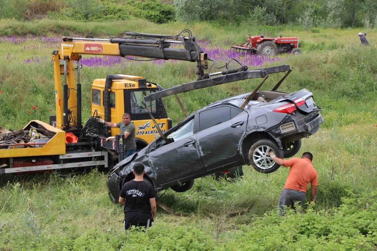 <div>Amasya’da hızla seyir halinde olan otomobil önündeki hafif ticari araca çarparak takla atıp şarampole uçtu. Kaza anı kameraya yansıdı.</div><div>Edinilen bilgiye göre, Amasya’dan Çorum yönüne hızla giden Oğuzhan Aday yönetimindeki 19 AGA 149 plakalı otomobil, Yıldızköy mevkisinde önünde seyir halinde olup kavşakta dönüşe geçmeye çalışan Mehmet Çelik’in kullandığı 34 GSJ 798 plakalı hafif ticari araca çarptı. Savrulan otomobil, takla atıp şarampole uçtu. İçerde sıkışan sürücü çevreden yetişenlerin ve itfaiye ekibinin yardımıyla çıkartıldı. Ambulansla hastaneye kaldırılarak yaralı tedavi altına alındı.</div><div>Hızla gelen otomobilin aracına çarptığı kaza anını anlatan sürücü Mehmet Çelik, "Çok hızlı geliyordu. Geldiğini bile görmedim. Karşı şeride girip benim aracıma çarptı" dedi.</div><div>Çelik, İstanbul’dan memleketi Amasya’nın Göynücek ilçesine gelirken varacağı yere yarım saat kala yaşanan kazayı yaralanmadan atlattıklarını söyledi.</div><div>Kaza anı çevredeki bir güvenlik kamerasına yansırken, polis ve jandarma ekipleri inceleme başlattı.</div><div></div><div><b>Kaynak:</b> IHA</div>