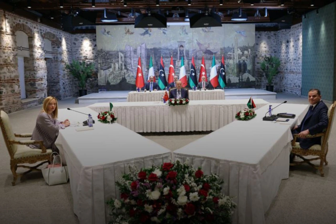 <div>Cumhurbaşkanı Recep Tayyip Erdoğan, İtalya Başbakanı Giorgia Meloni ve Libya Millî Birlik Hükümeti Başbakanı Abdülhamid Dibeybe'yle Türkiye-İtalya-Libya İş Birliği Zirvesi'nde İstanbul'da bir araya geldi.</div> <div>Basına kapalı olarak gerçekleştirilen görüşmelerde Cumhurbaşkanı Erdoğan'a; Dışişleri Bakanı Hakan Fidan, Milli İstihbarat Teşkilatı (MİT) Başkanı İbrahim Kalın ve Cumhurbaşkanı Dış Politika ve Güvenlik Başdanışmanı Akif Çağatay Kılıç eşlik etti.</div> <div>Cumhurbaşkanlığı Dolmabahçe Çalışma Ofisi'ndeki gerçekleşen zirvede Türkiye-İtalya ve Libya arasındaki iş birliği konuları ve bölgesel meseleler ele alındı.</div> <div>Cumhurbaşkanı Erdoğan zirvede, düzensiz göç hareketleri dahil Akdeniz havzasının maruz kaldığı sınamalarla mücadelede üç ülkenin iş birliğinin önemine dikkat çekti.</div> <div>Zirve sonrası İletişim Başkanlığı'ndan yapılan açıklamaya göre, Cumhurbaşkanı Erdoğan ayrıca düzensiz göçün kaynağının kurutulabilmesi için uzun vadeli ve sürdürülebilir çözümler gerektiğini, bu noktada çok taraflı eş güdüme ihtiyaç duyulduğunu ifade etti.Zirvede, iş birliği komitelerinin toplanmasını müteakip liderlerin bir araya gelerek alınan kararları değerlendirmesi kararlaştırıldı.</div> <div>Gazze'deki İsrail saldırganlığına ve insani trajediye dikkat çeken Cumhurbaşkanı Erdoğan, acil ateşkesin tesisi ve insani yardımların bir an önce bölgeye ulaştırılmasında uluslararası toplumun üzerine büyük sorumluluk düştüğünü, kalıcı çözümün ancak 1967 sınırları temelinde başkenti Doğu Kudüs olan, egemen, bağımsız, coğrafi bütünlüğü haiz bir Filistin Devleti'nin kurulması olduğunu vurguladı. </div>
