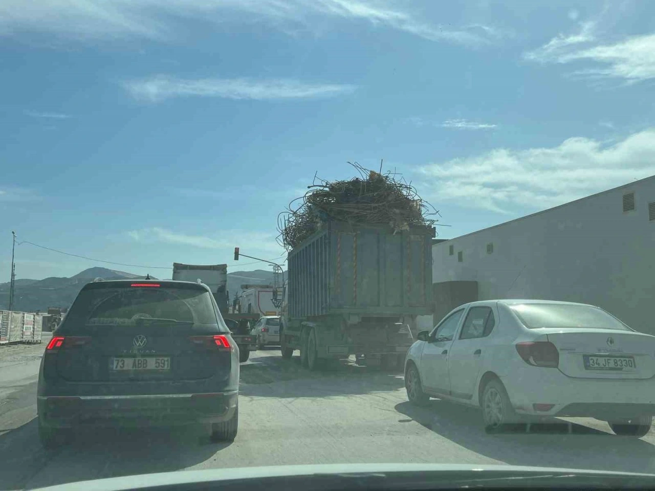 <div>Hatay’da düzensiz yüklenen hurda demir yüküyle trafiğe çıkan kamyon sürücüsü trafiği tehlikeye soktu.</div><div>İnşa çalışmalarının devam ettiği Antakya ilçesinde bir yandan yeni binalar yükselirken, diğer yandan hasarlı binaların yıkımları devam ediyor. Trafikte çoğunlukta olan kamyon sürücüleriyse aşırı ve düzensiz yükle hem trafiği tehlikeye atıyorlar, hem de insanların canlarını. Antakya ilçesi Ürgen Paşa Mahallesi mevkiinde düzensiz yüklenen hurda demir yüküyle trafiğe çıkan kamyon sürücüsü kazaya davetiye çıkarttı. Kasayı aşan yüke aldırış etmeden sürücünün o anları kameraya yansıdı.</div><div></div><div><b>Kaynak:</b> IHA</div>