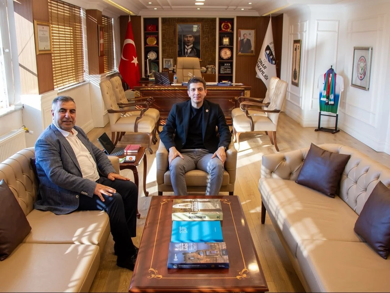 <div>Diyarbakır'în tanınan isimlerinden kanaat önderi ve iş insanı Tahsin Arslan Diyarbakır’ın Çınar ilçe Kaymakamı Zikrullah Erdoğan’a nezaket ziyaretinde bulundu. Kaymakamlık makamında gerçekleşen buluşmada, ilçe halkının ihtiyaçları ve bölgedeki sosyal projeler üzerine fikir alışverişi yapıldı.</div> <h3>Ziyaret samimi bir atmosferde geçti </h3> <div>Samimi bir atmosferde geçen görüşmede, Çınar’ın gelişimi için yapılabilecek çalışmalar değerlendirildi. Ziyaretten duyduğu memnuniyeti dile getiren Kaymakam Erdoğan, birlik ve dayanışmanın önemine dikkat çekti.</div>