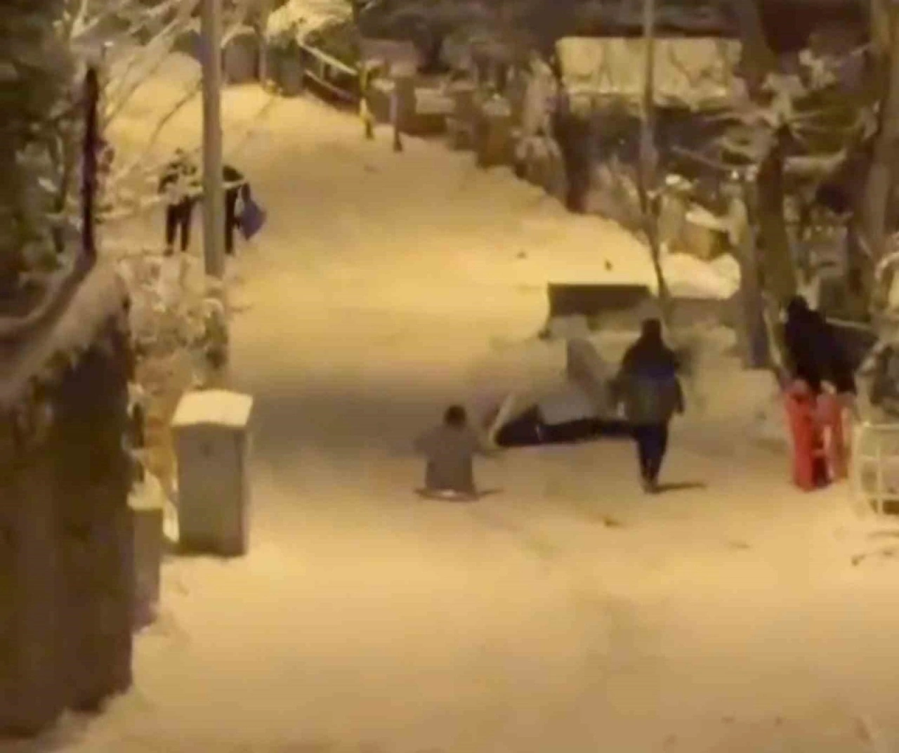 <div>Bartın’da şiddetli kar yağışı nedeniyle Demirciler Mahallesi Kürtyaması Sokak’ta tepsi ile kayan Ş.S., duvara çarptı. Olayın ardından hareketsiz yerde yatan genç kıza olay yerine çağrılan sağlık ekipleri tarafından ilk müdahalesi yapıldı. Hastaneye kaldırılan genç kızın sağlık durumunun ciddiyetini koruduğu öğrenildi.</div> <div>Öte yandan genç kızın duvara çarptığı anlar ise cep telefonu kamerasına yansıdı.</div> <div></div> <div></div> <div><strong>Kaynak:</strong> IHA</div>