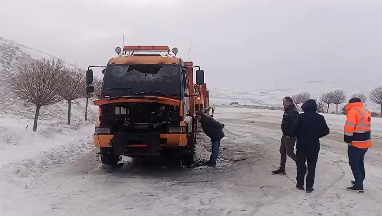 <div>Sivas’ta seyir halindeki BMC marka karla mücadele kamyonu, yanarak kullanılamaz hale geldi.</div><div>Edinilen bilgilere göre olay, sabah saatlerinde havalimanı yolu üzerinde bulunan Çelebiler köyü yakınlarında meydana geldi. Kar ve buzlanma nedeniyle bölgede tuzlama çalışması yapan Karayolları Genel Müdürlüğü’ne ait 58 DP 280 plakalı BMC marka kamyon, seyir halindeyken motor kısmından yanmaya başladı. Alevler kısa sürede aracı sardı. İhbar üzerine olay yerine itfaiye ekipleri sevk edildi. Ekiplerin müdahalesiyle kısa sürede söndürülen yangında araç kullanılamaz hale geldi.</div><div>Yangının çıkış nedeni araştırılıyor.</div><div></div><div><b>Kaynak:</b> IHA</div>