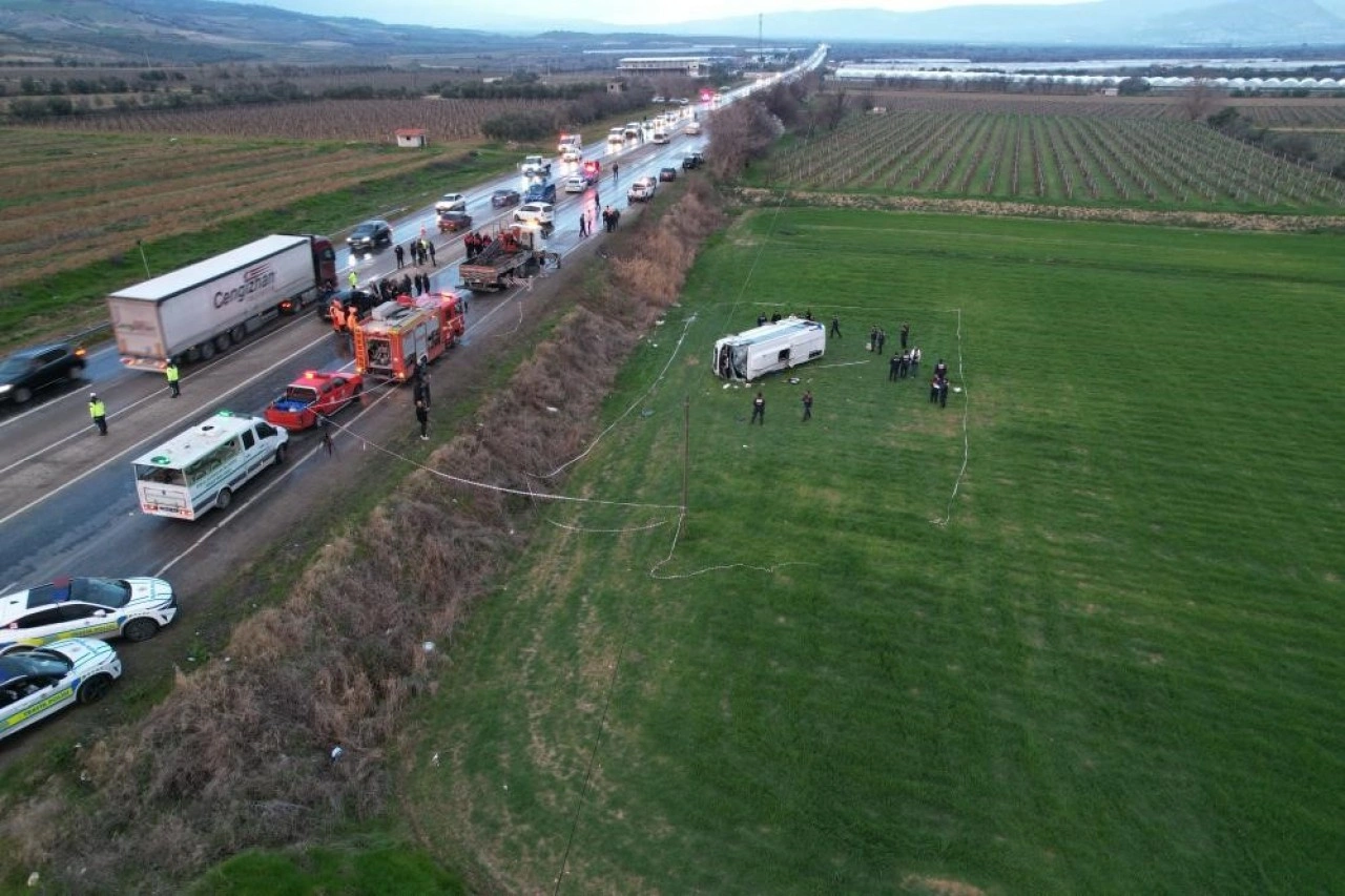 <div>DENİZLİ(İHA) – Denizli’de halter şampiyonasına katılmak üzere İzmir’den yola çıkan öğrencileri taşıyan midibüsün Buldan’da devrildiği kazada yaralanan 26 kişiden 18’i hastanedeki tedavilerinin ardından taburcu edildi. Kazada 2 kişi hayatını kaybederken, yaralı 8 öğrencinin hastanede tedavisi devam ediyor.</div><div>Dün, Buldan ilçesi Yenicekent Mahallesi Denizli-Salihli karayolunda meydana gelen kazada, Besim G. (66) idaresindeki 35 BYZ 354 plakalı midibüs karşı şeride geçerek, tarlaya devrildi. İzmir’den hareket eden midibüsün Okul Sporları Genç Kızlar Halter Şampiyonası’na katılacak olan Konak Çınarlı Endüstri Meslek Lisesi öğrencilerini ve öğretmenlerini taşıyordu. Meydana gelen trafik kazasında yaralanan 26 öğrenciden 18’i hastanedeki tedavilerinin ardından taburcu edildi. Yaralı 8 öğrencinin hastanede tedavisi devam ediyor.</div><div>Kazada hayatını kaybeden Nisanur Yıldızer (15) ve antrenör Zeynep Bozkurt (64) Denizli Adli Tıp Kurumu Grup Başkanlığı morguna kaldırılmasının ardından cenazeleri İzmir’e sevk edildi.</div><div>Kazayla ilgili çalışmalar devam ediyor.</div><div></div><div><b>Kaynak:</b> IHA</div>