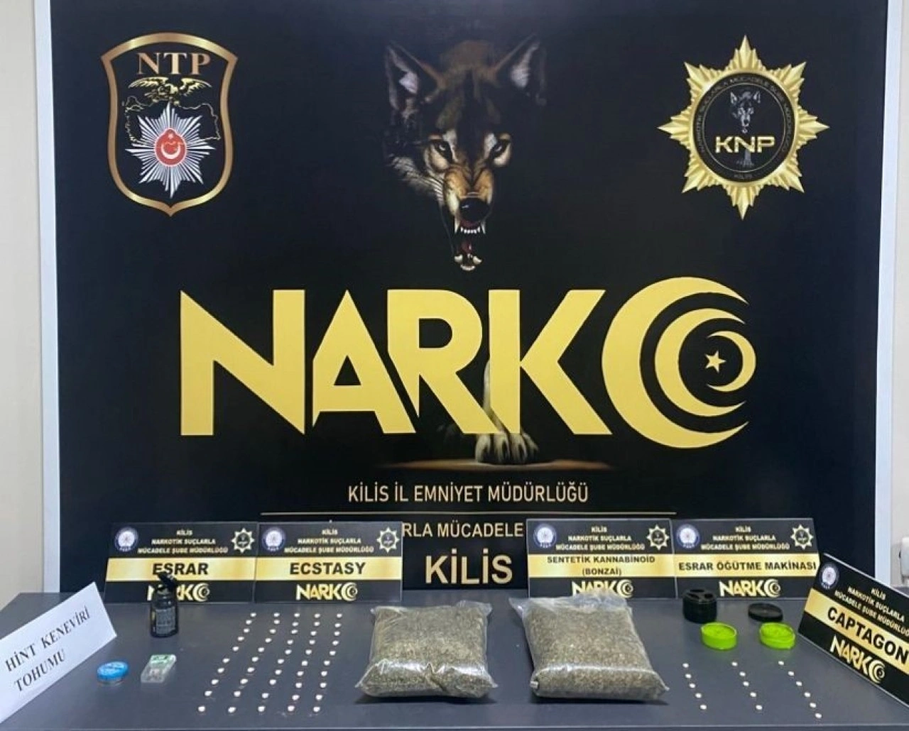 <div>Kilis’te düzenlenen uyuşturucu operasyonunda, yakalanan 3 kişiden 2’si M.F.Z. ve İ.N.M., çıkarıldıkları mahkemece tutuklandı.</div><div>Kilis İl Emniyet Müdürlüğü Narkotik Suçlarla Mücadele Şube Müdürlüğü ekipleri, uyuşturucu madde kullanan ve ticaretini yapan kişilere yönelik operasyon düzenledi. Yapılan baskınlarda 1.083,98 gram sentetik kannabinoid, 50 adet ecstasy, 16 adet captagon, 13,17 gram esrar, 0,69 gram hint keneviri tohumu ve 1 adet esrar öğütme aparatı ele geçirildi.</div><div>Operasyonda C.A., M.F.Z. ve İ.N.M. gözaltına alındı. Şüphelilerden C.A. adli kontrol şartıyla serbest bırakılırken, M.F.Z. ve İ.N.M. tutuklanarak cezaevine gönderildi.</div><div></div><div><b>Kaynak:</b> IHA</div>